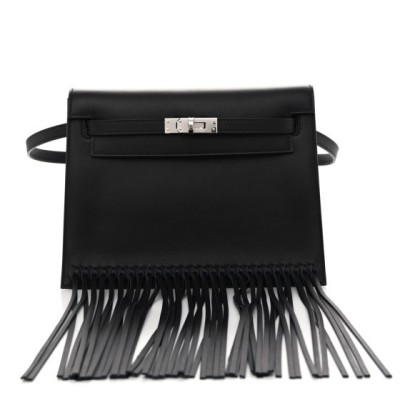 Hermes Swift Kelly Danse Anate Fringed Belt Bag Black
