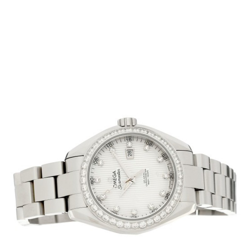 Omega Stainless Steel Diamond Bezel Mother of Pearl 34mm Seamaster Aqua Terra Co-Axial Chronometer Automatic Watch 231.15.34.20.55.001