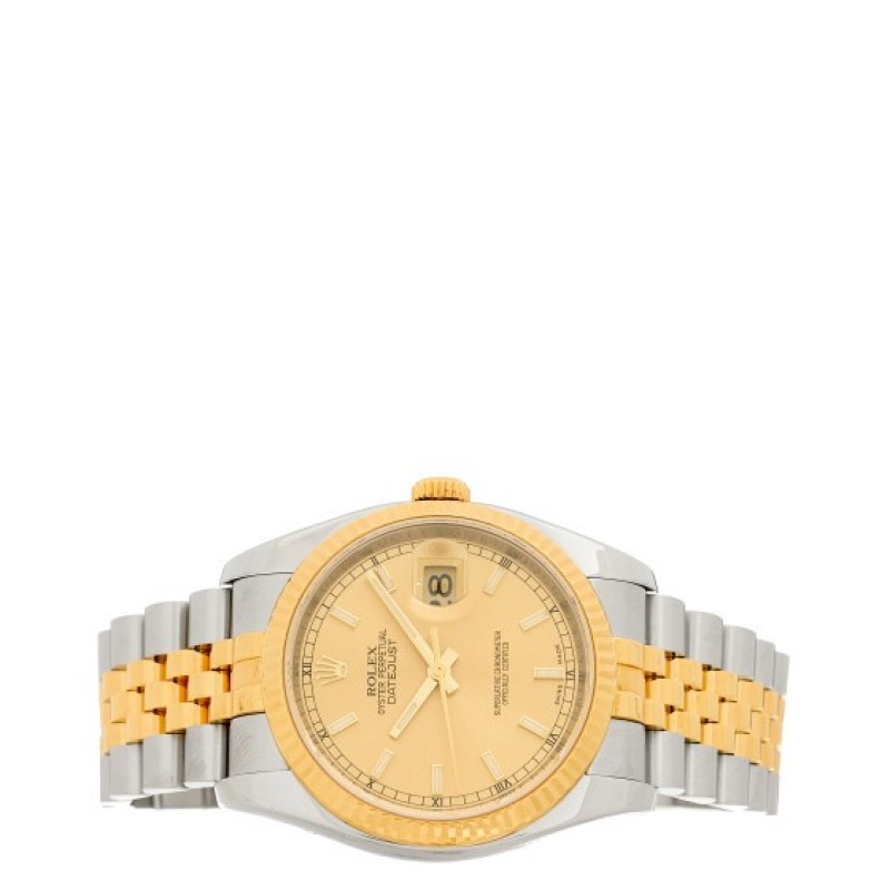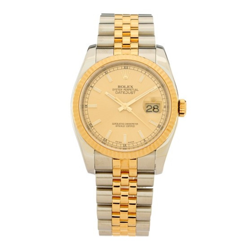 Rolex Stainless Steel 18K Yellow Gold 36mm Oyster Perpetual Datejust Watch Champagne 116233
