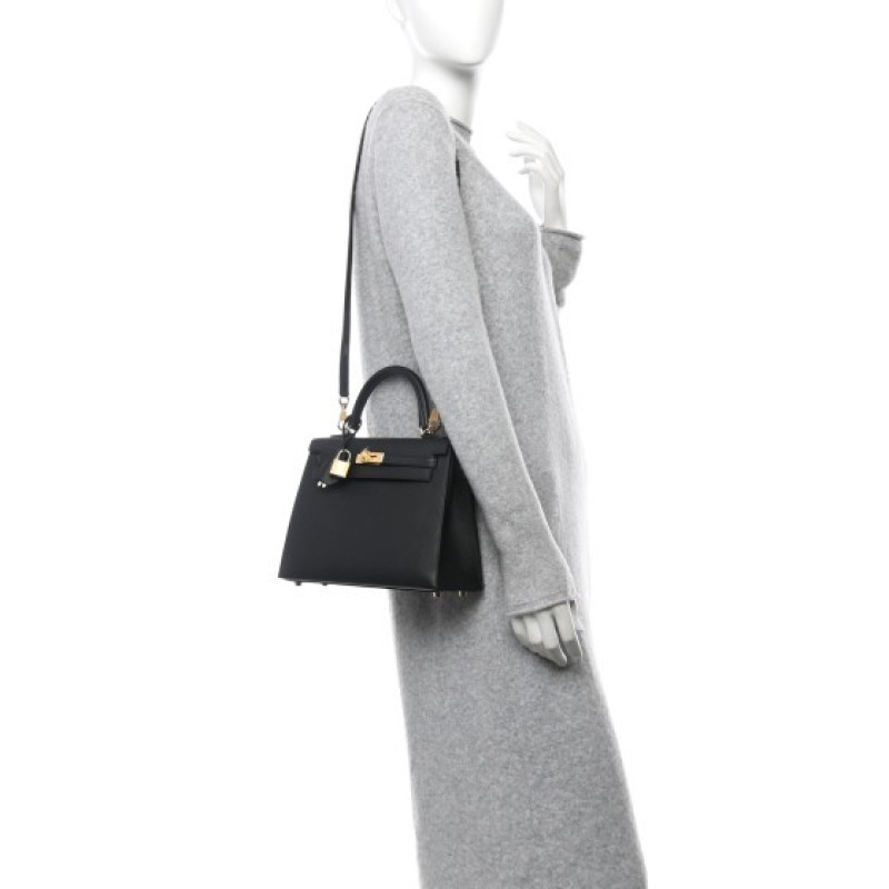 This is an authentic HERMES Epsom Kelly Sellier 25 in Black. This stunning Hermes classic is beautifully crafted of stamped epsom calfskin leather in black. This bag features a leather top handle, optional shoulder strap, and polished gold hardware. The bag opens to a leather interior with zipper and patch pockets.
