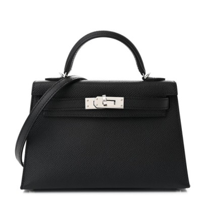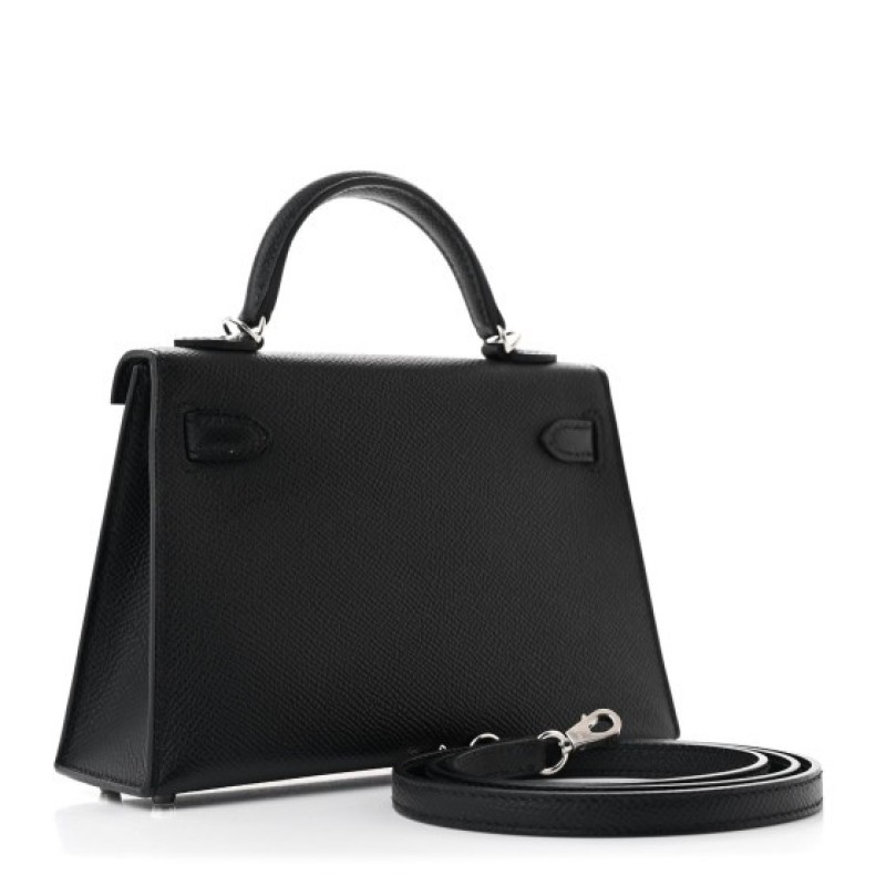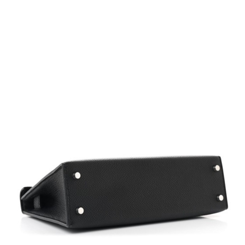 This is an authentic HERMES Epsom Mini Kelly Sellier 20 in Black. This stunning Hermes classic handbag is beautifully crafted in stamped Epsom calfskin leather in classic black. A single rolled leather top handle is secured with palladium hardware and an optional leather shoulder strap is included. The traditional Kelly turn-lock secures the small flap. The interior is composed of soft lambskin leather and features one flat pocket.