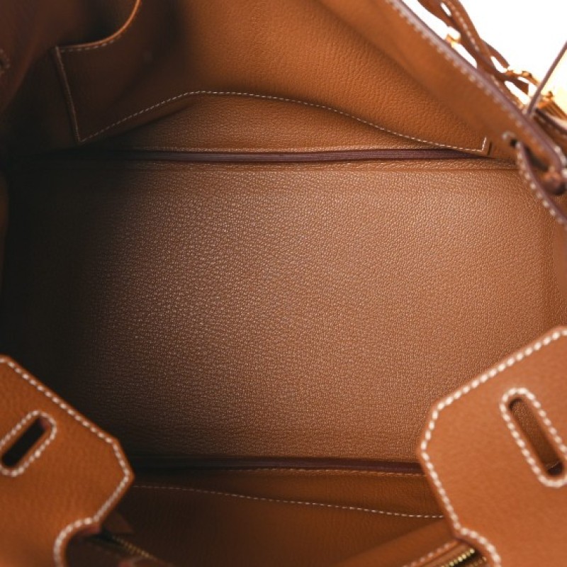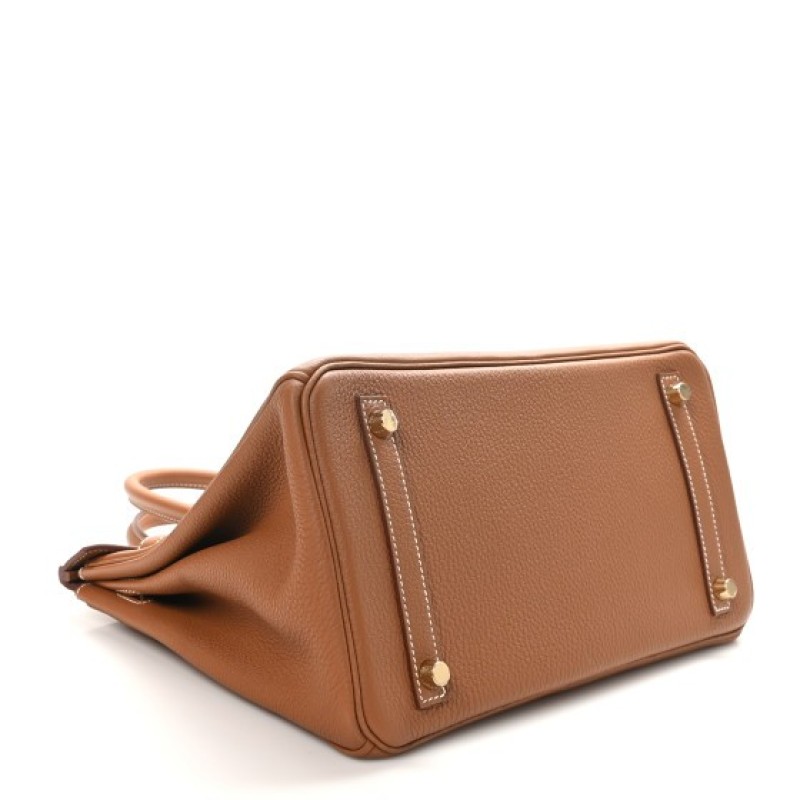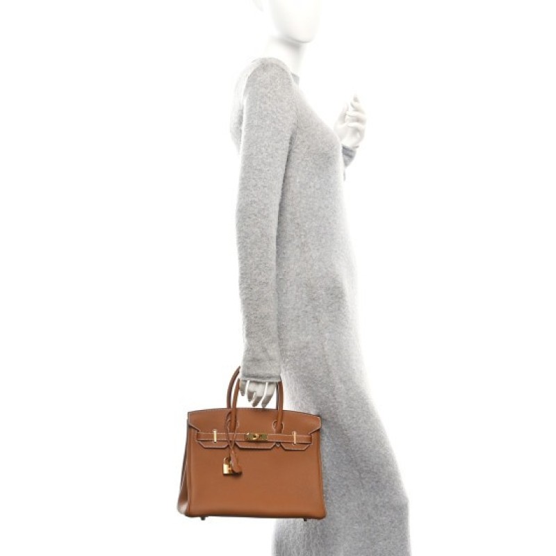 This is an authentic HERMES Epsom Birkin 30 in Gold. This iconic handbag is finely crafted of grained golden brown calfskin leather. The bag features rolled leather top handles, leather belt closure with a gold plated turn lock, and a padlock with keys in a clochette. This opens to a matching leather interior with zipper and patch pockets.