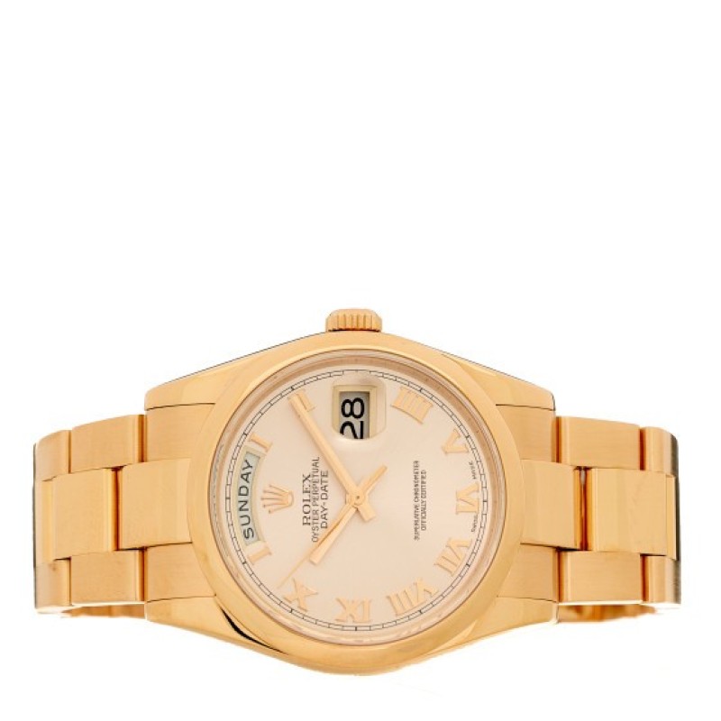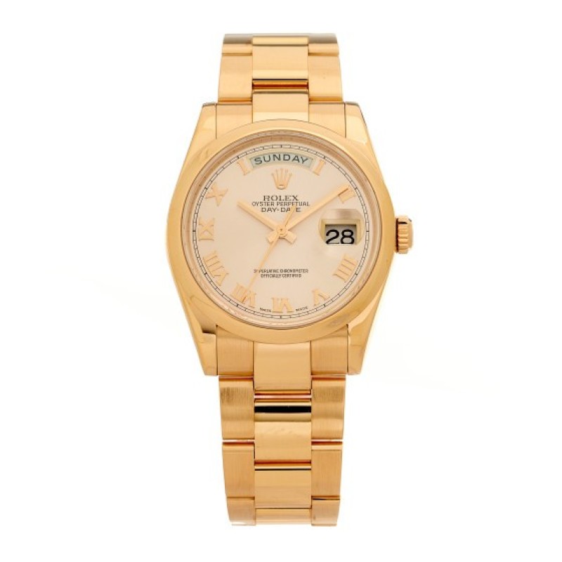 Rolex 18K Everose Gold 36mm Oyster Perpetual Day-Date Watch Champagne Roman 118205