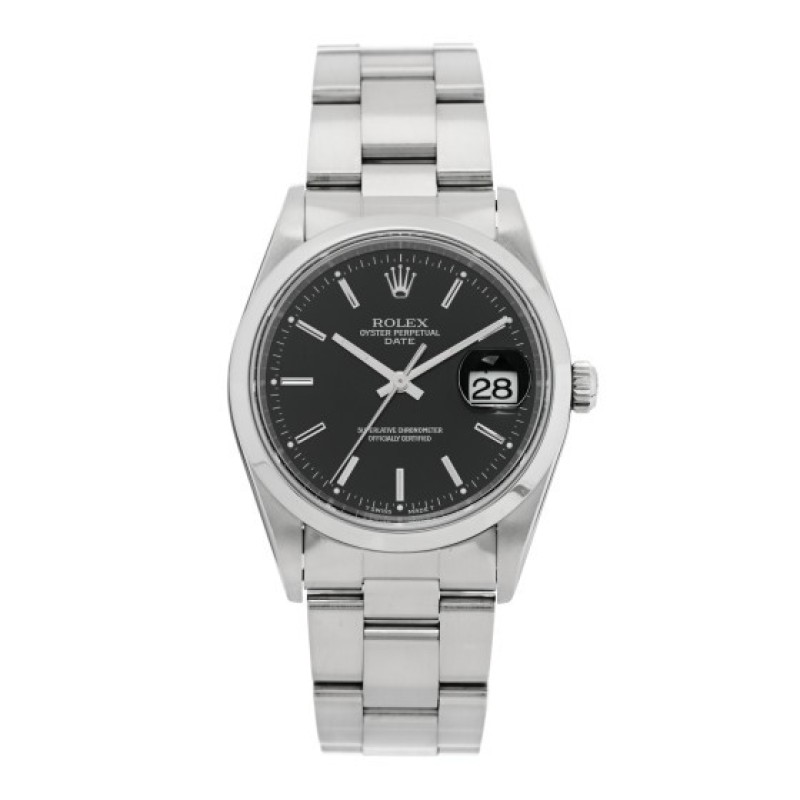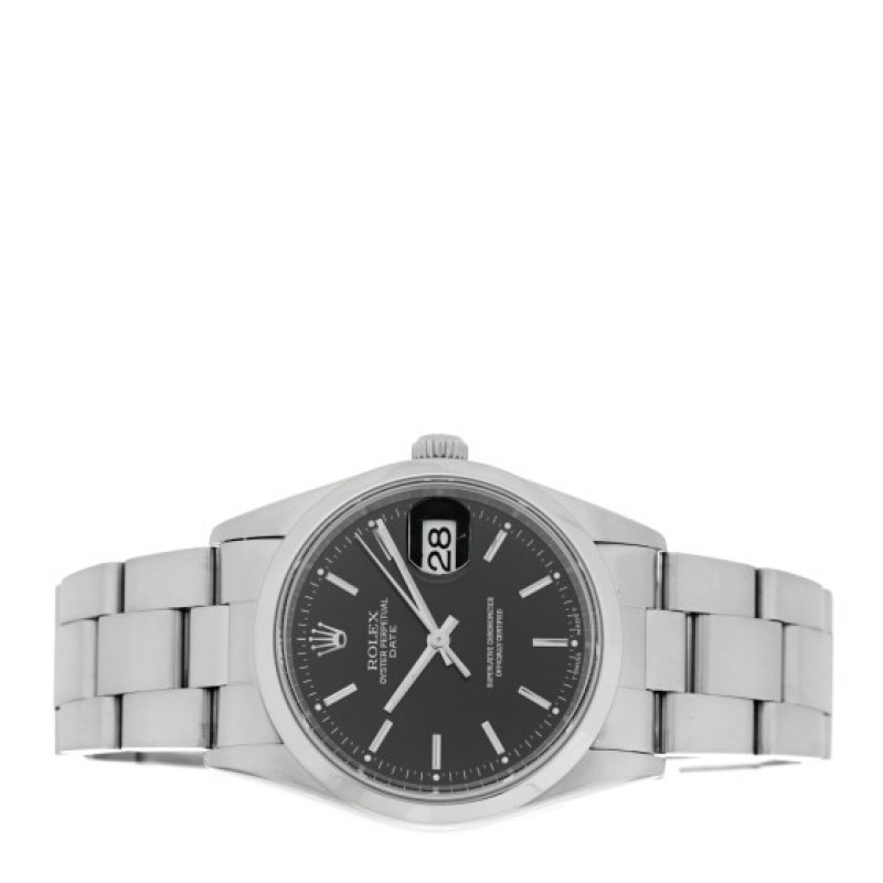 Rolex Stainless Steel 34mm Oyster Perpetual Date Watch Black 15200