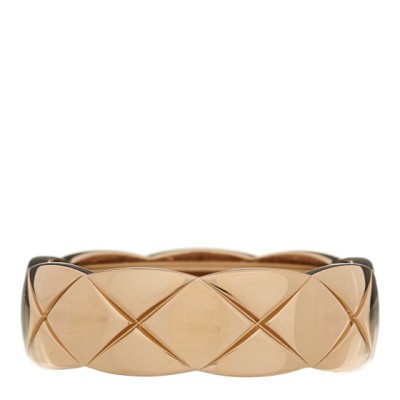 This is an authentic CHANEL 18K Beige Gold Small Coco Crush Ring 59 or 8.75. The ring is crafted of 18 karat beige gold and features the iconic Chanel quilt motif throughout the band.