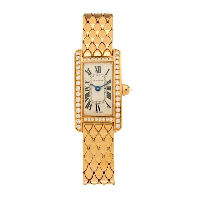 Cartier 18K Pink Gold Diamond Bezel 15mm Tank American Watch