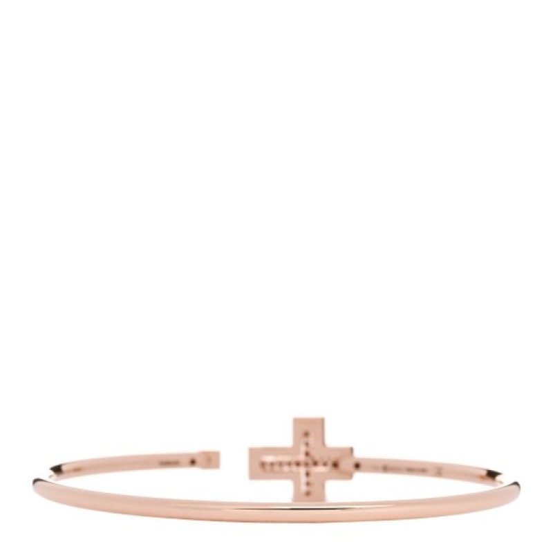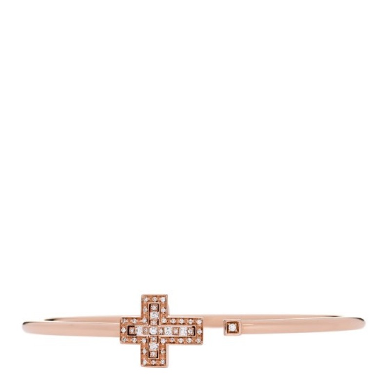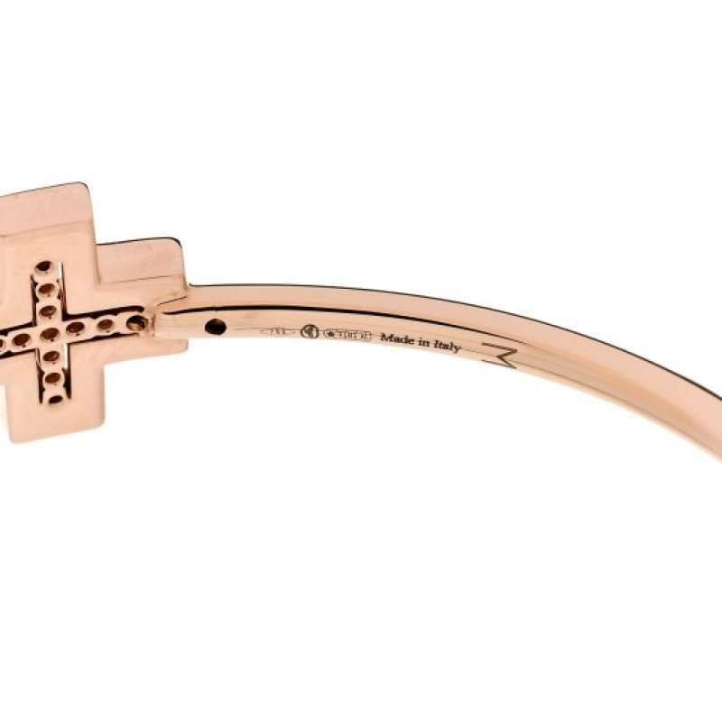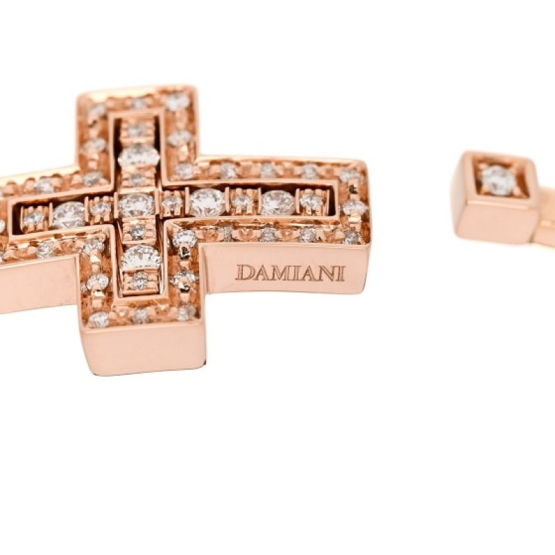 This is an authentic DAMIANI 18K Pink Gold Diamond Belle Epoque Bracelet, size medium. The bracelet is crafted of 18 karat pink gold and features a high polished band and a cross motif with diamond accents, approximately .20 total carat weight.
