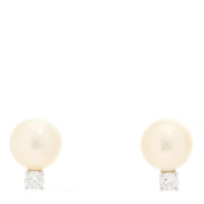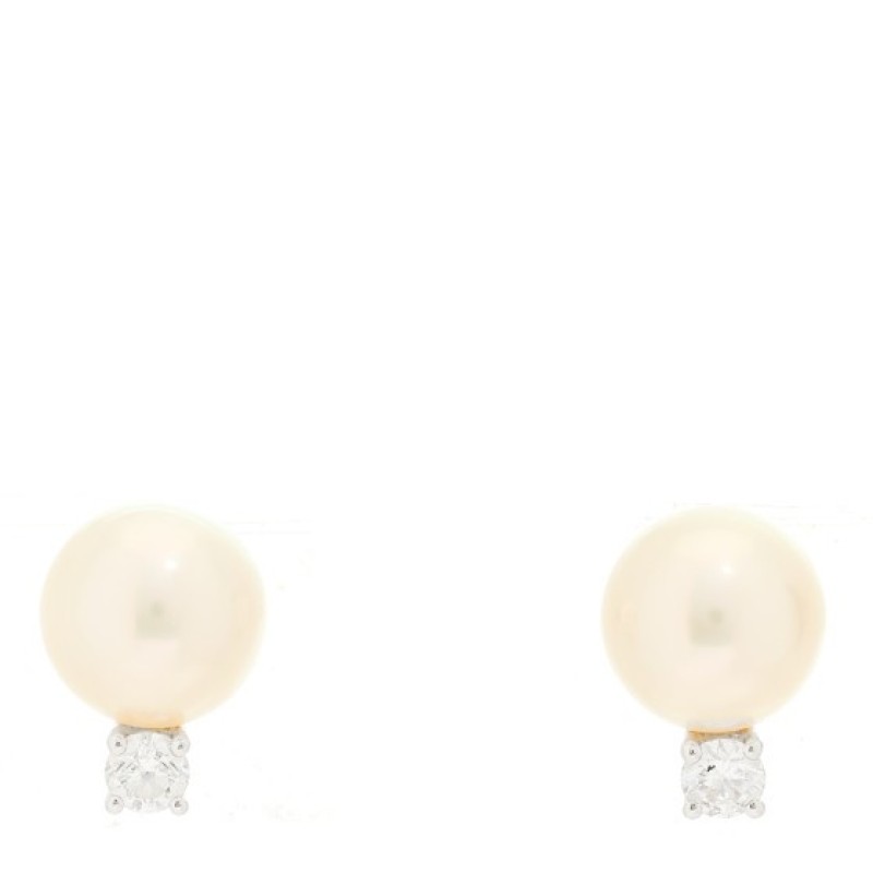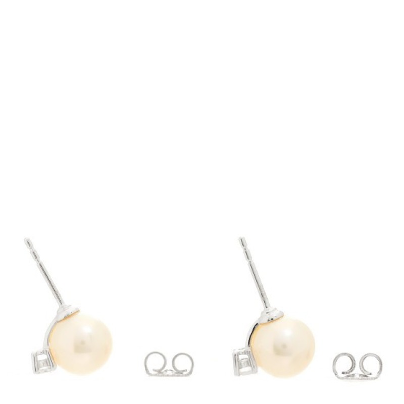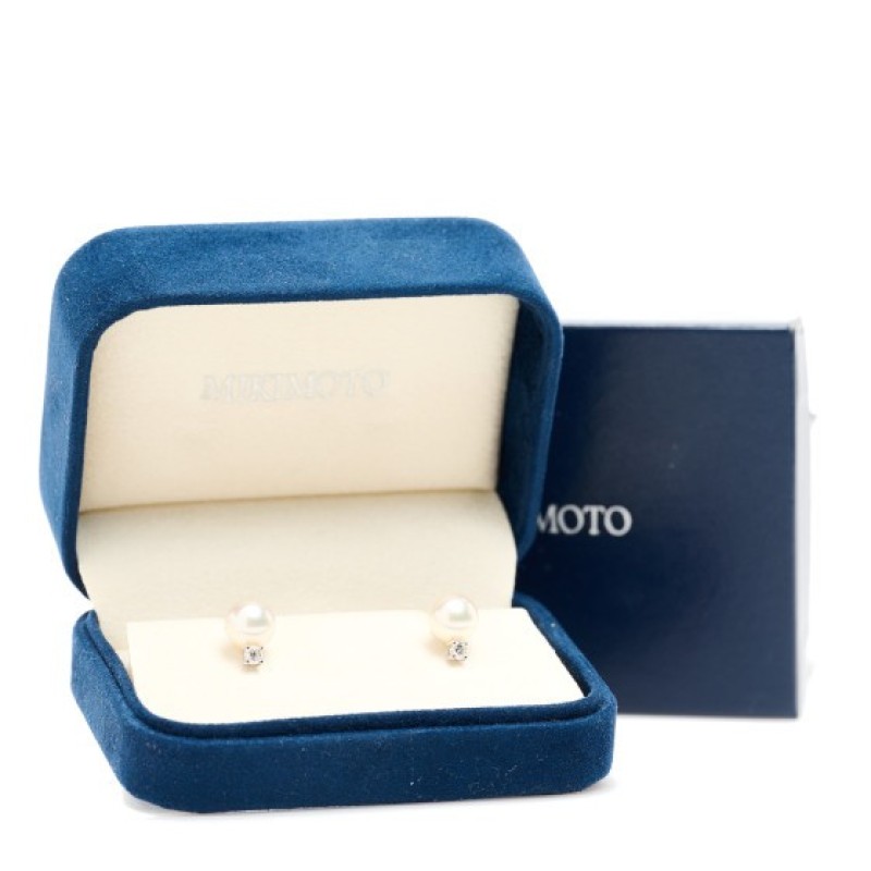Mikimoto 18K White Gold Diamond Akoya Pearl 8-8.5mm Stud Earrings