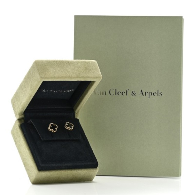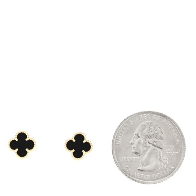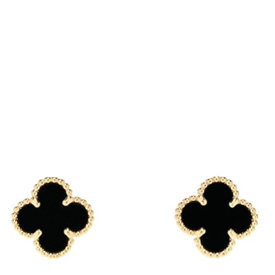 Van Cleef & Arpels 18K Yellow Gold Black Onyx Sweet Alhambra Earrings