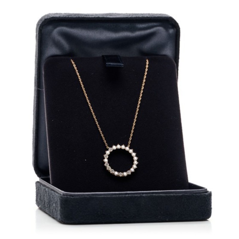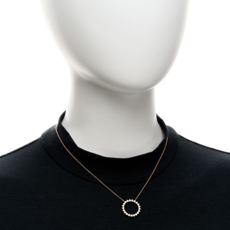 Tiffany 18K Rose Gold Diamond Medium Open Circle Pendant Necklace