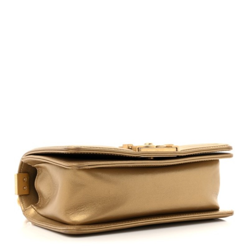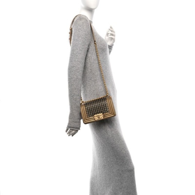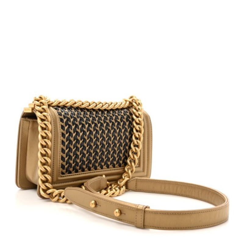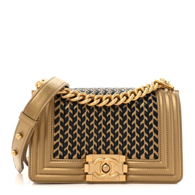Chanel Metallic Lambskin Woven Small Boy Flap Black Gold