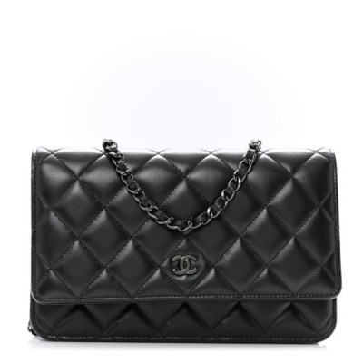 Chanel Lambskin Quilted Wallet On Chain WOC So Black