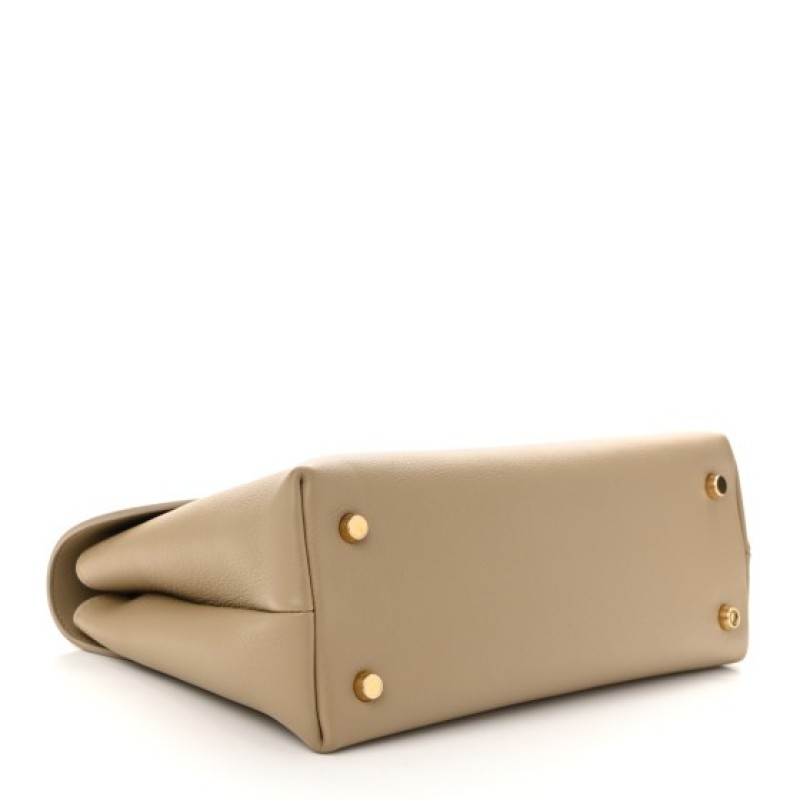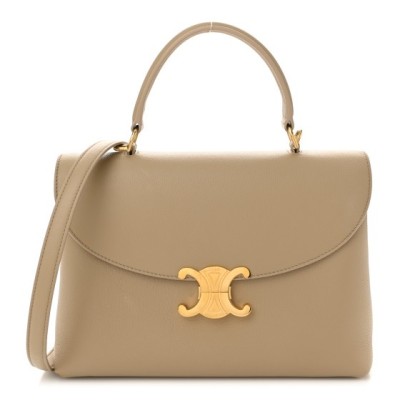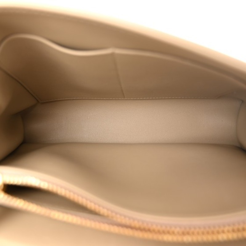 This is an authentic CELINE Supple Calfskin Medium Nino in Bronze. This chic shoulder bag is crafted of smooth calfskin leather in brown. The bag features an adjustable leather shoulder strap with gold hardware, and a matching gold press lock. The front flap opens to a matching leather interior with zipper and patch pockets.