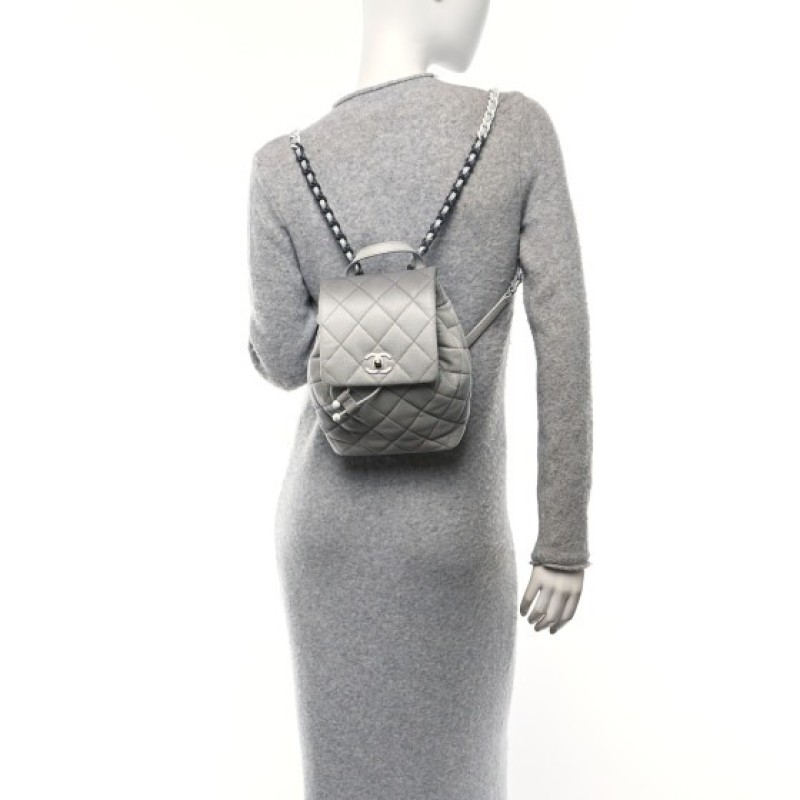 Chanel Shaded Caviar Quilted Lacquered CC My Everything Drawstring Backpack Dark Grey Light Grey $3,440 |