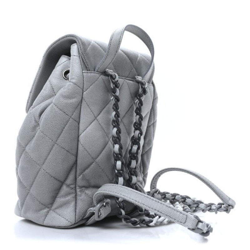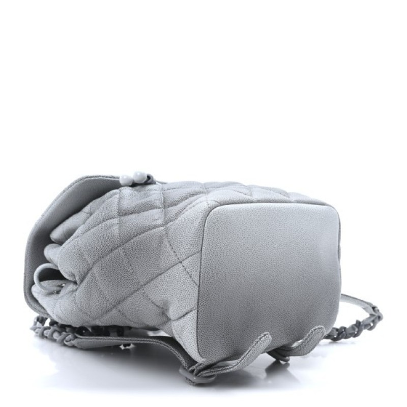 Chanel Shaded Caviar Quilted Lacquered CC My Everything Drawstring Backpack Dark Grey Light Grey