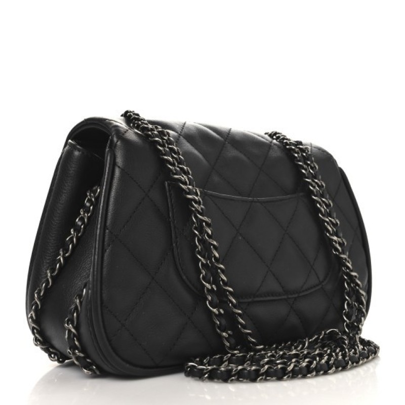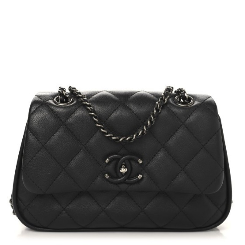 Chanel Calfskin Quilted Small Frame In Chain Flap Black