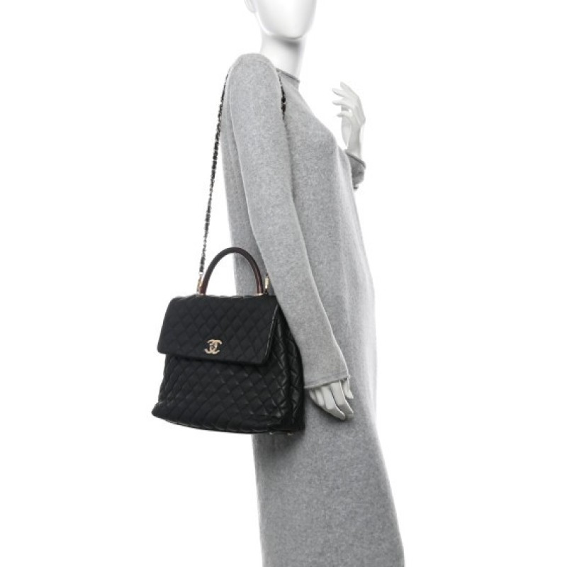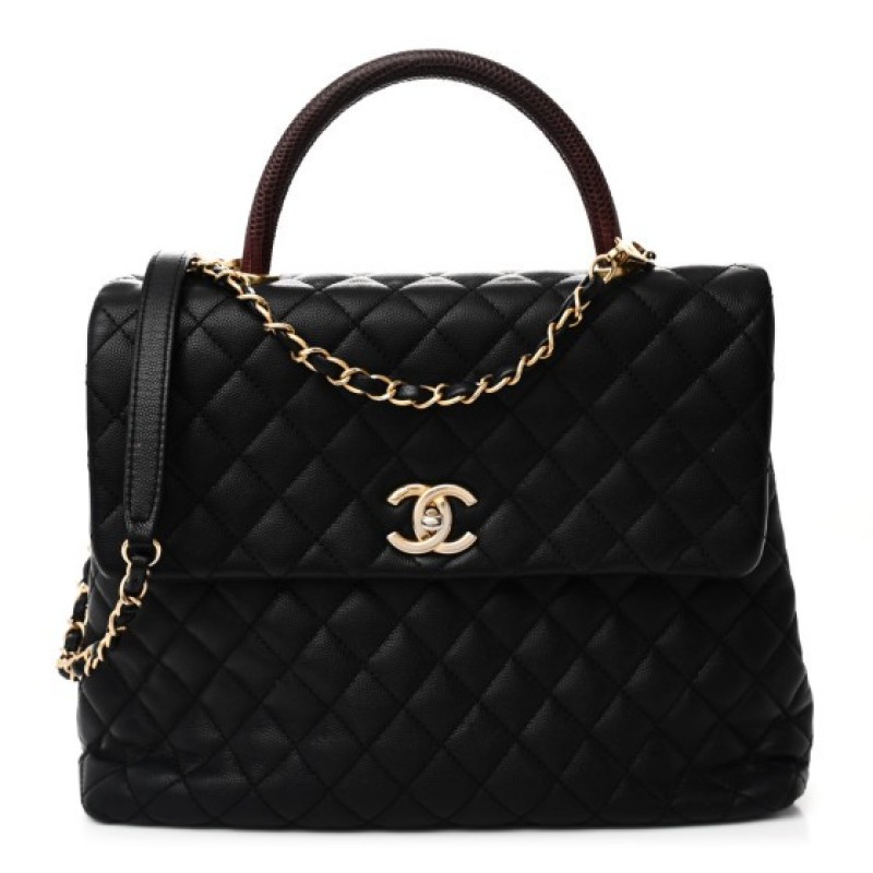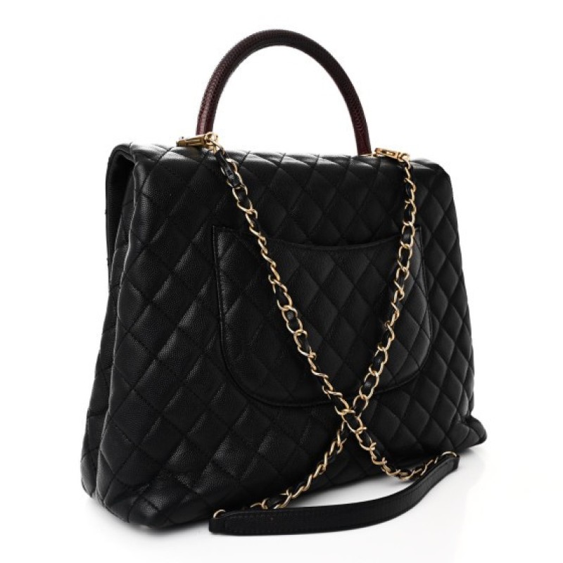 Chanel Caviar Lizard Quilted Large Coco Handle Flap Black