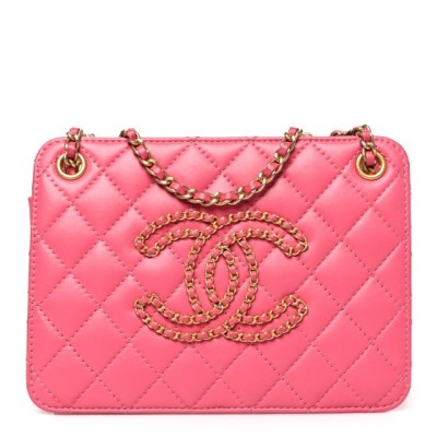 Chanel Calfskin Quilted Small CC Chain Accordion Tote Pink