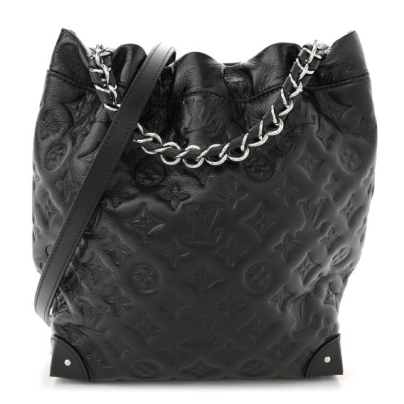 Louis Vuitton Lambskin Monogram Shadow Coussin Noe Trunk PM Black