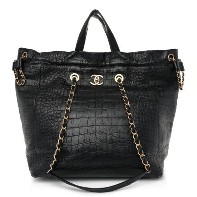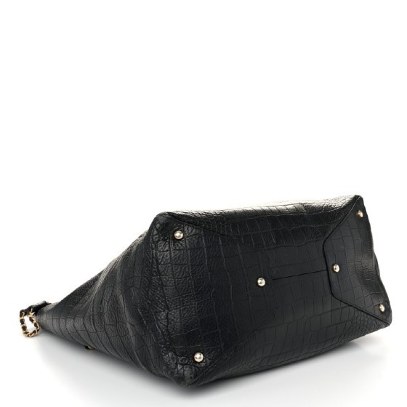 Chanel Calfskin Crocodile Embossed Large Cocodile Shopping Tote Black