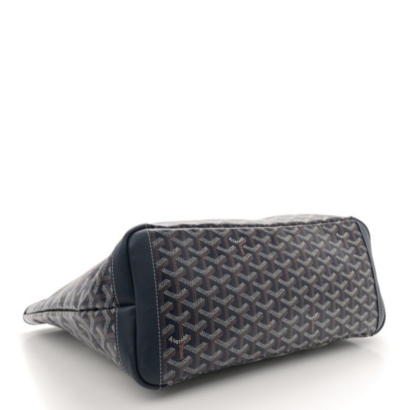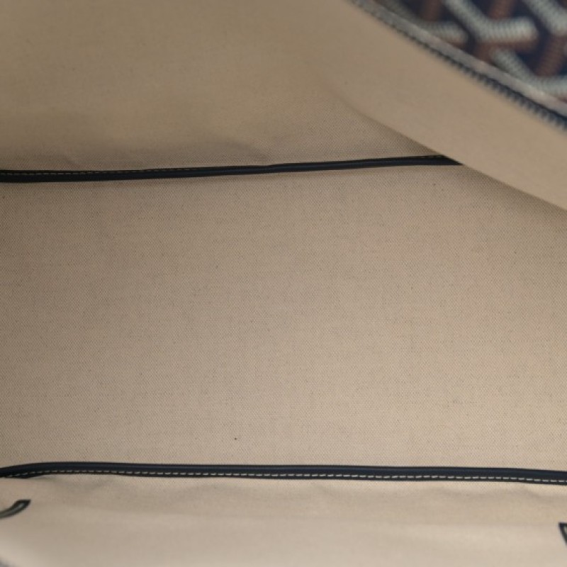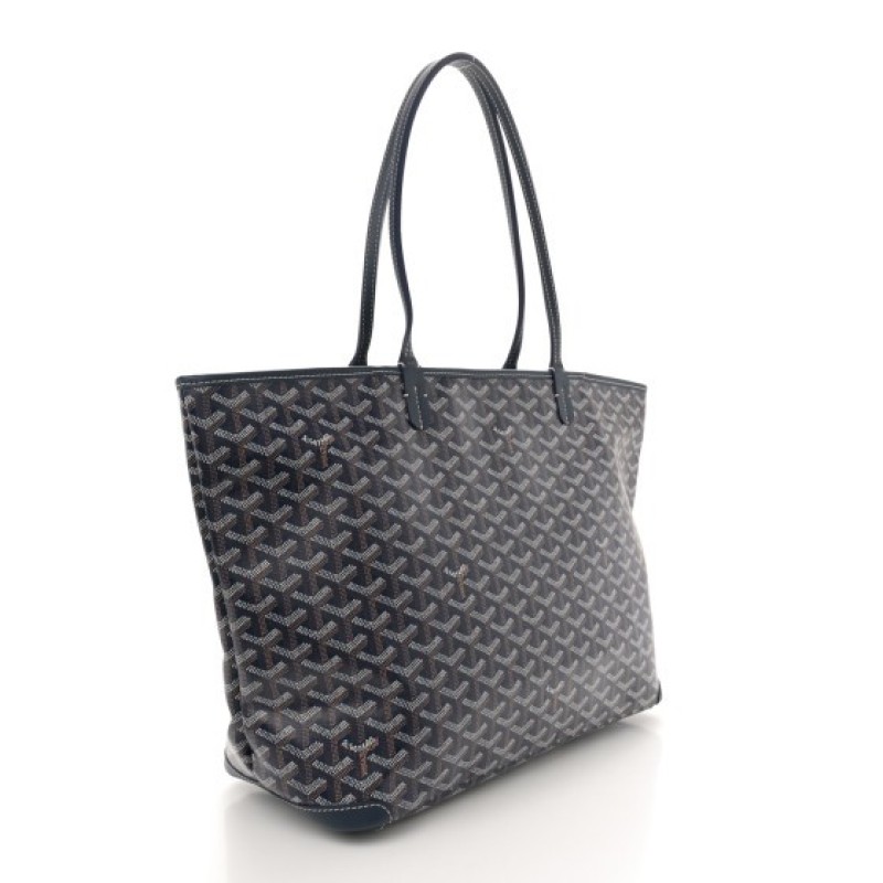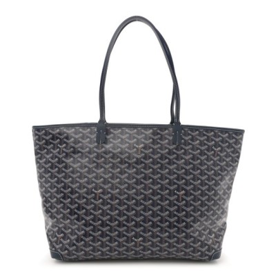 This is an authentic GOYARD Goyardine Artois GM in Navy. This is a relaxed structured tote crafted of goyardine coated canvas with its iconic chevron pattern. This tote features navy leather trim including leather strap handles, top edging and protective corner patches. The silver top zipper opens to a spacious off white interior of natural canvas with a hanging patch pocket lined with matching goyardine coated canvas.