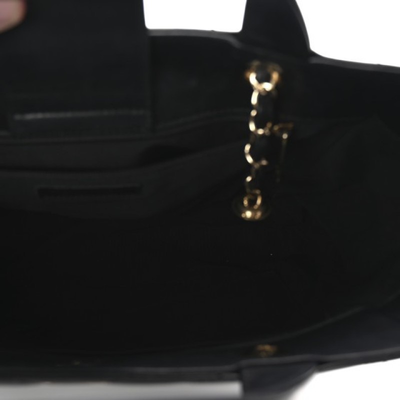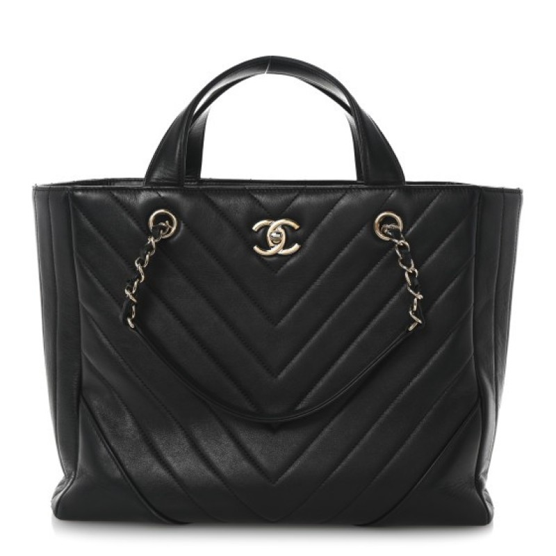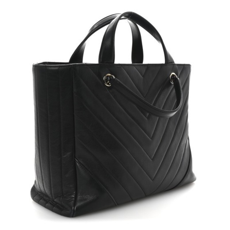 Chanel Calfskin Chevron Quilted Statement Shopping Tote Black