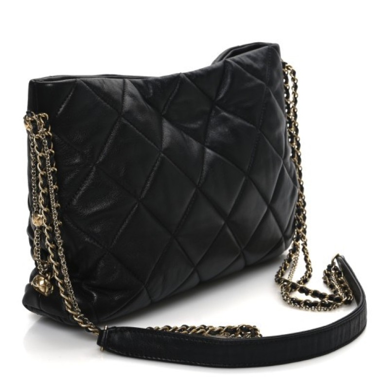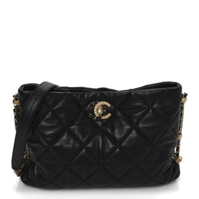 Chanel Lambskin Quilted Crush on Chains Hobo Black