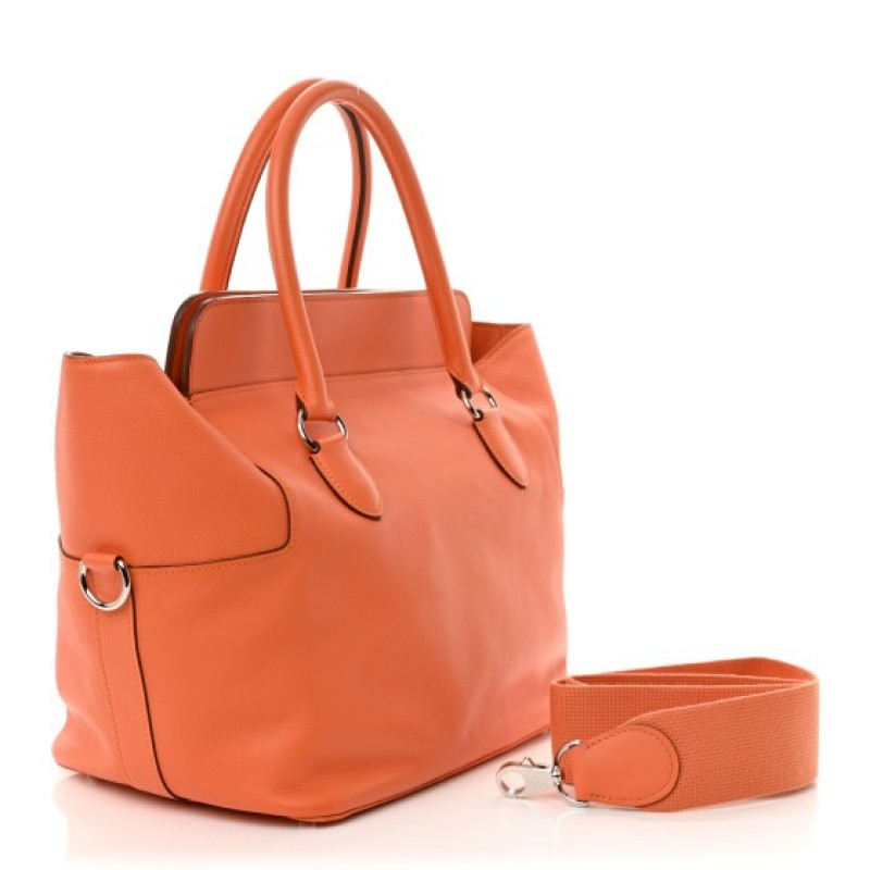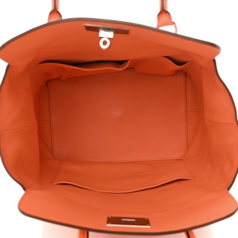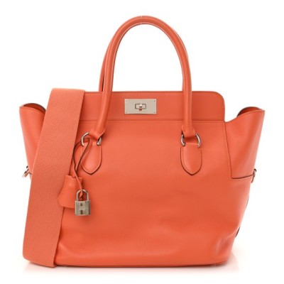This is an authentic HERMES Evercolor Toolbox 26 in Flamingo. This stylish tote is crafted of grained coral pink evercolor leather. The handbag features rolled leather top handles, optional shoulder strap, and polished palladium hardware including a facing turn lock. The top opens to a matching smooth leather interior with patch pockets.
