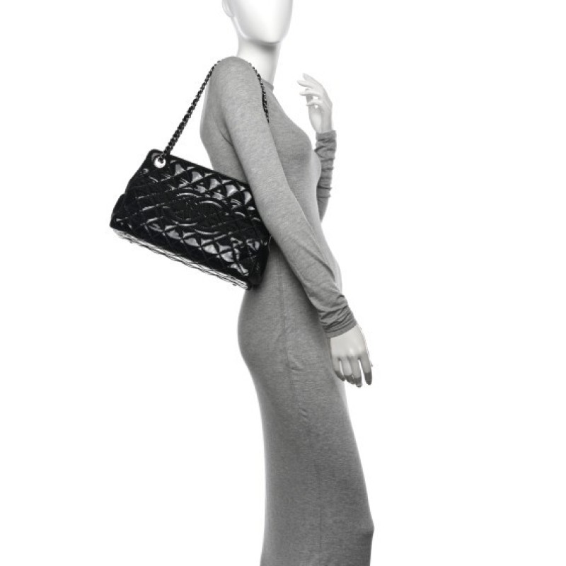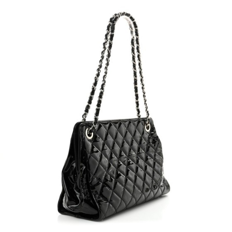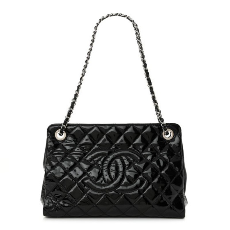 Chanel Patent Quilted Timeless CC Shopping Tote Black