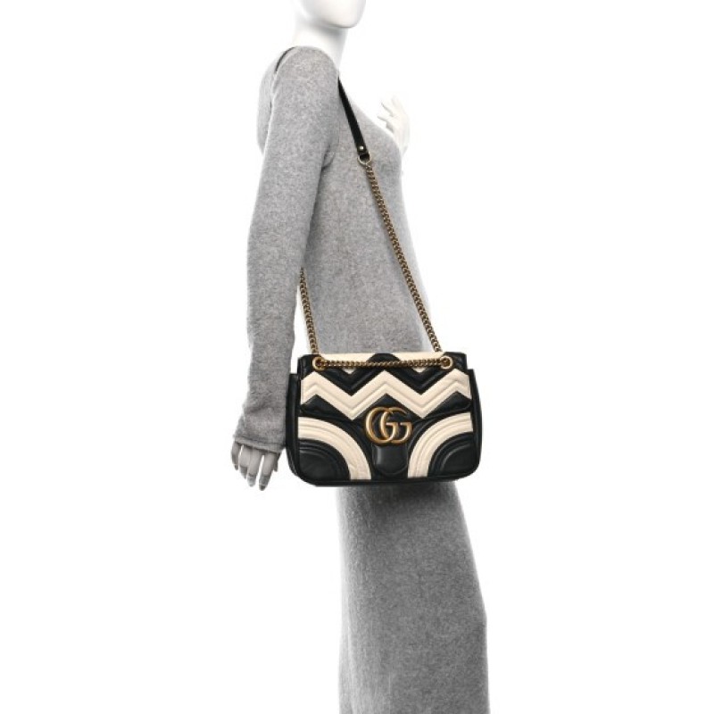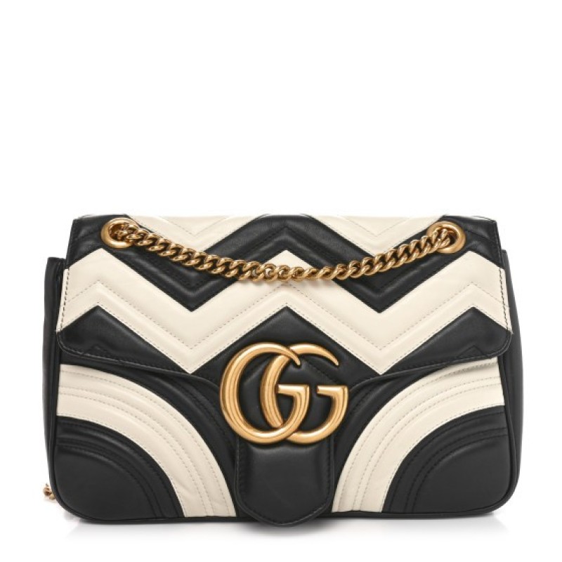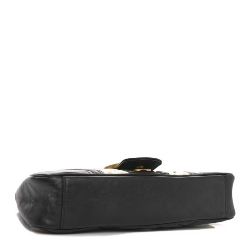 Gucci Calfskin Matelasse Medium GG Marmont Shoulder Bag Black White