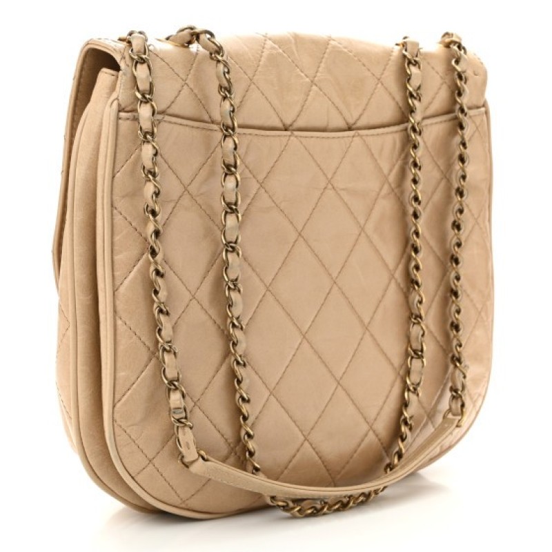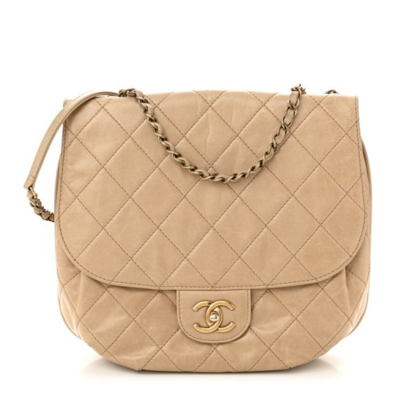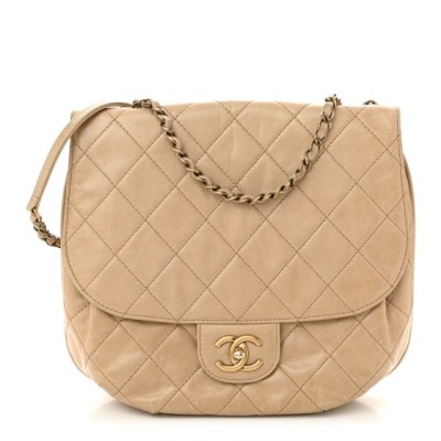 Chanel Glazed Calfskin Quilted Medium Bubble CC Flap Beige