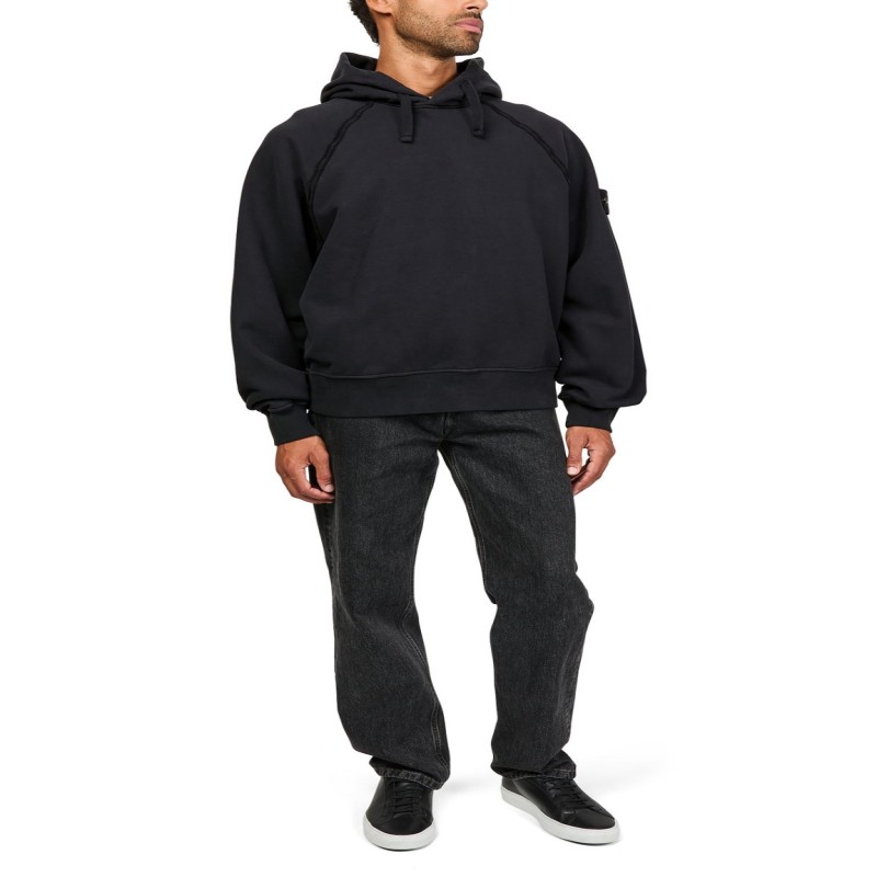 Introducing Stone Island's logo patch hoodie, a blend of modernity and functionality. This hooded top features raglan sleeves and visible stitching, adding a distinct texture. Perfect for versatile styling, its long-sleeved design effortlessly elevates casual looks.