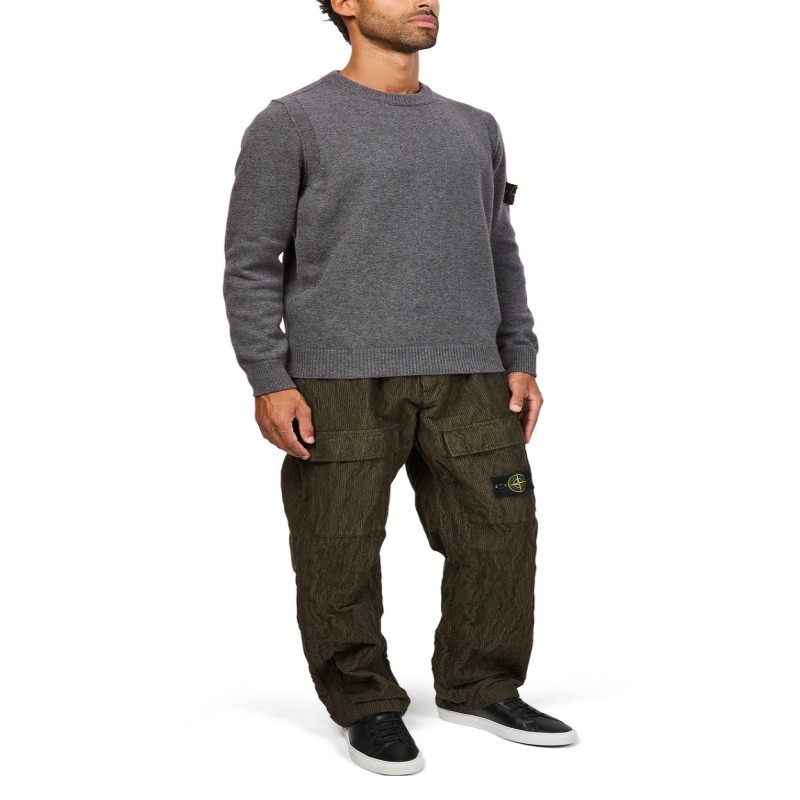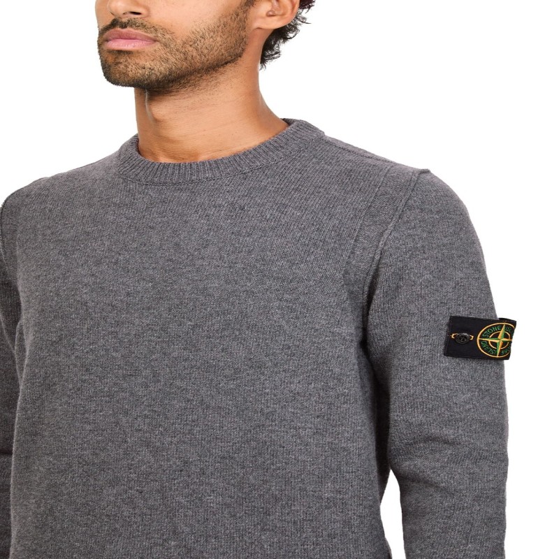Introducing Stone Island's crew neck sweater, a masterpiece of modern knitwear. This regular fit piece features a ribbed texture and long cuffed sleeves, offering both comfort and style. The logo on the side adds a subtle touch of distinction, making it perfect for any occasion.