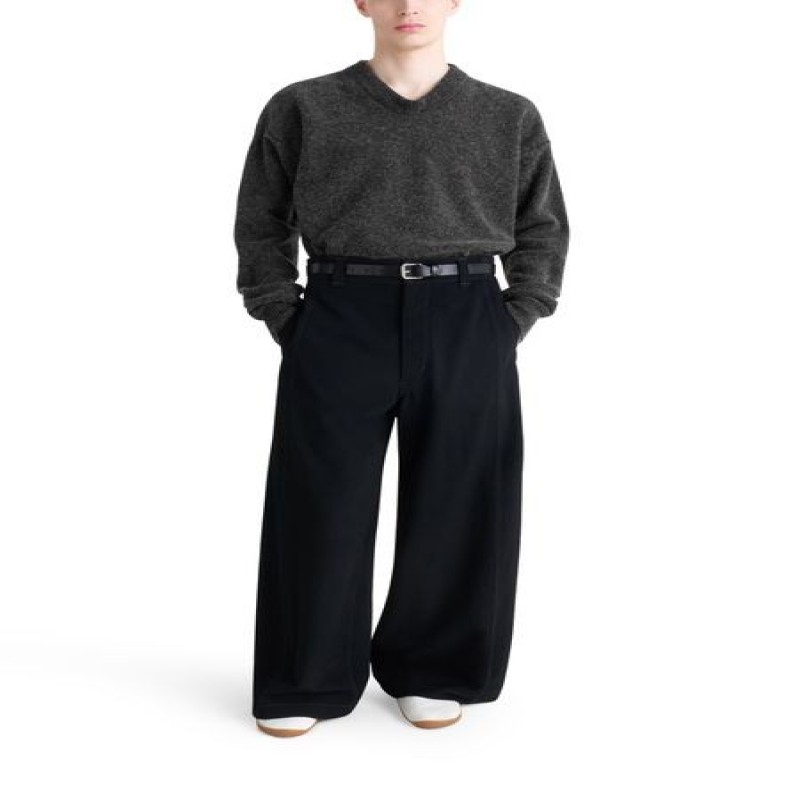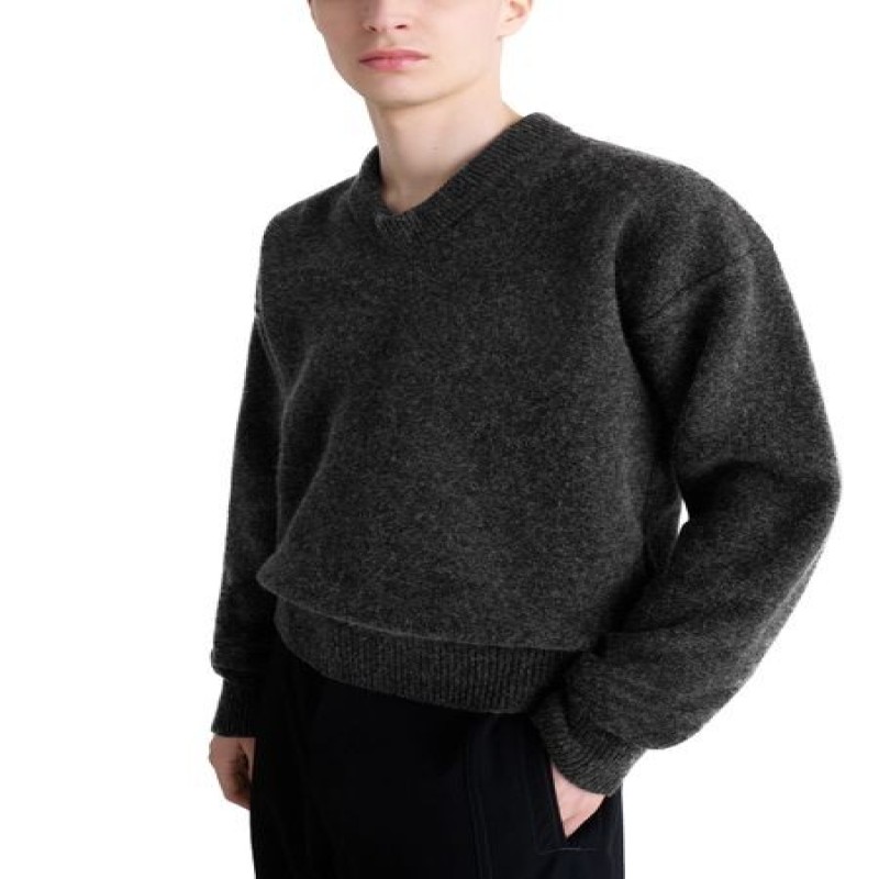 Reveal Lemaire's Boxy V-neck sweater, a masterpiece in marled material. This long-sleeved sweater features a sophisticated V-neck and ribbed details, offering a modern silhouette. Perfect for versatile styling, it seamlessly transitions from casual to chic, making it an essential addition to any wardrobe.
