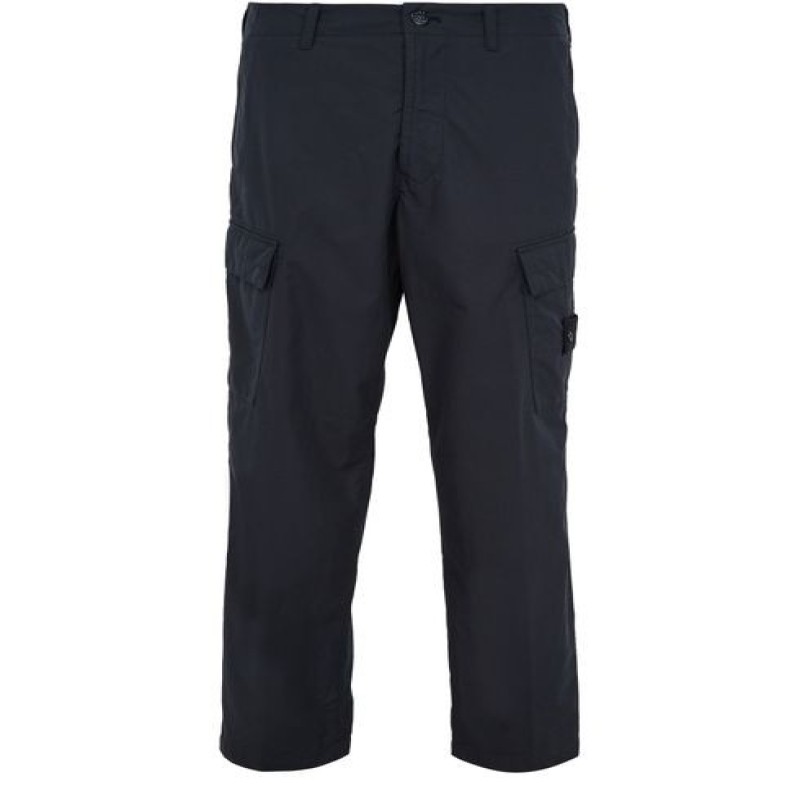 Unveil Stone Island's cargo pants, a modern staple with ankle-length design and buttoned zipper closure. Featuring large side pockets and visible stitching, these pants blend style and functionality. Perfect for versatile styling, they offer comfort with belt loops and welt pockets, making them a chic addition to any wardrobe.