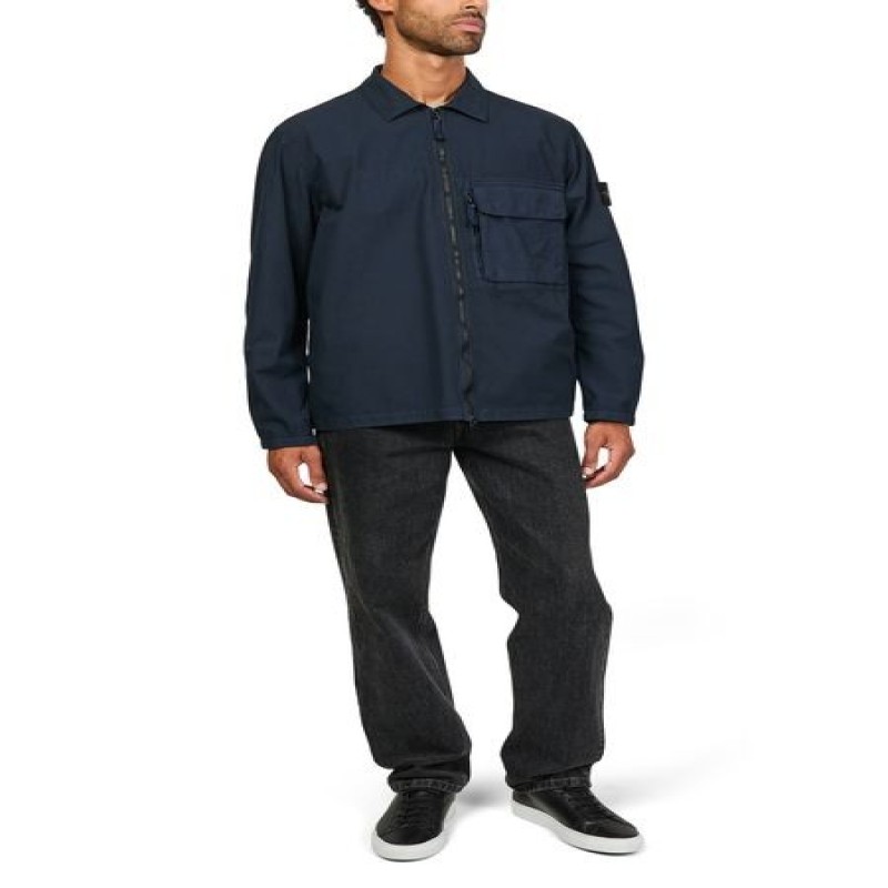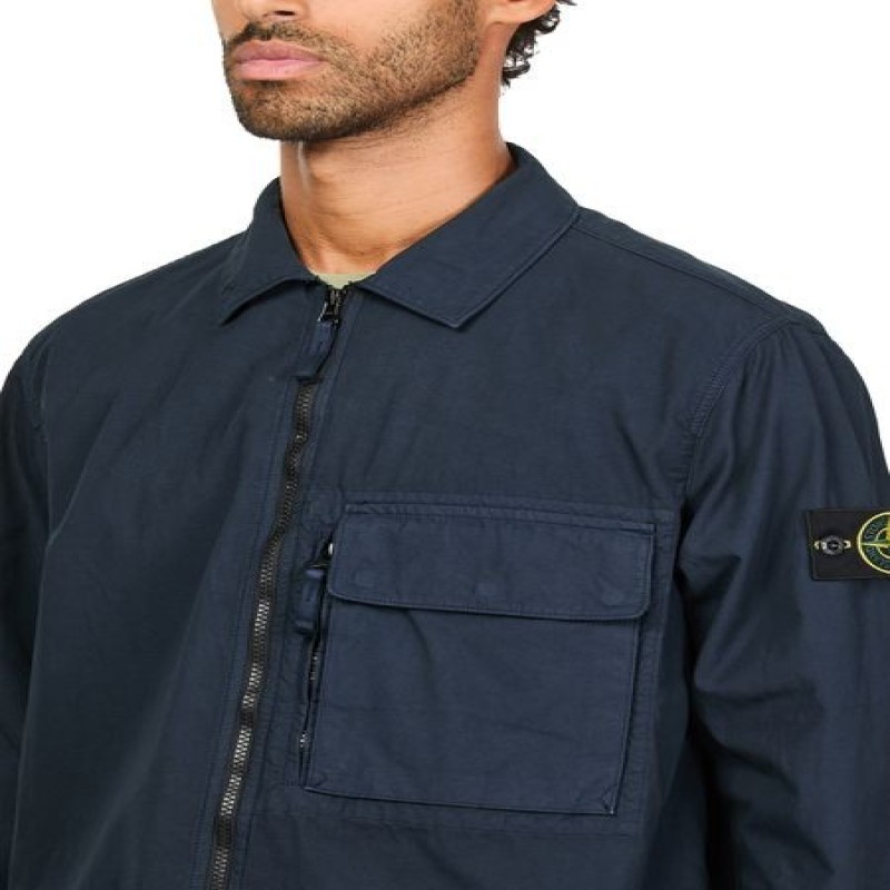 Unveil Stone Island's zipped shirt, a fusion of style with a zipper closure and long sleeves. Featuring a side logo and visible stitching, this shirt offers a sleek silhouette. The breast pocket adds practicality, making it a versatile choice for various ensembles.