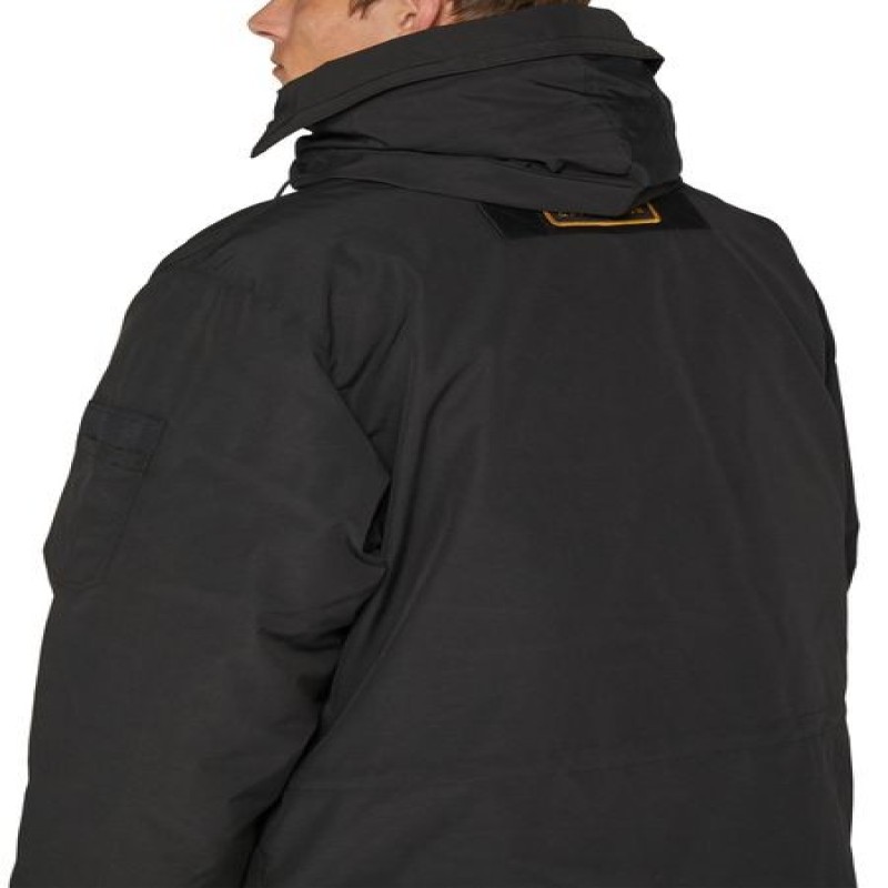 Expedition Parka is a robust and functional jacket designed to withstand extreme cold weather conditions. It features a collection of textures and sleeve detailing, with an adjustable collar and cuffs for added protection. The large front pocket is practical for storage, and the warm material makes it suitable for temperatures ranging from -30°C.