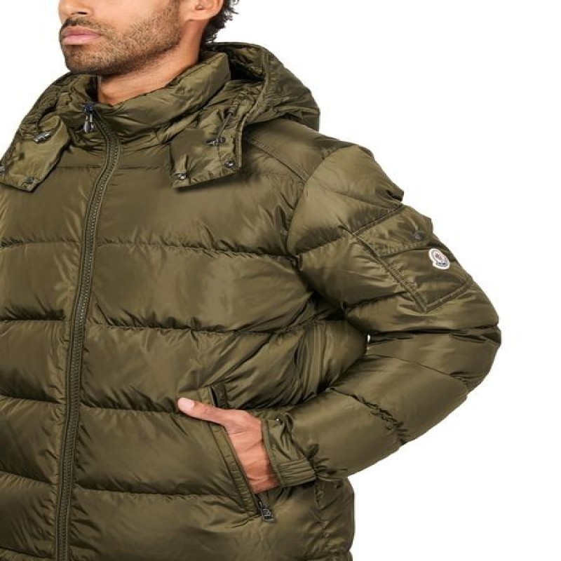 Discover Moncler's Maya down jacket, a short puffer jacket crafted for regular fit. Featuring a sleek zipper closure, it boasts long sleeves and a cozy hood. The padded texture adds warmth, while side pockets enhance functionality. Ideal for versatile styling, from casual outings to more refined occasions.