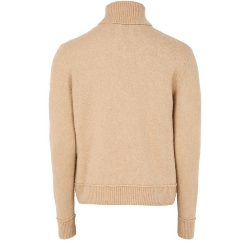 Unveil Moncler's turtleneck sweater, a masterpiece of knitwear. This long-sleeved piece features a ribbed texture and an embroidered logo on the side, offering both style and comfort. Perfect for any occasion, it pairs effortlessly with your favorite jeans or a sleek skirt.