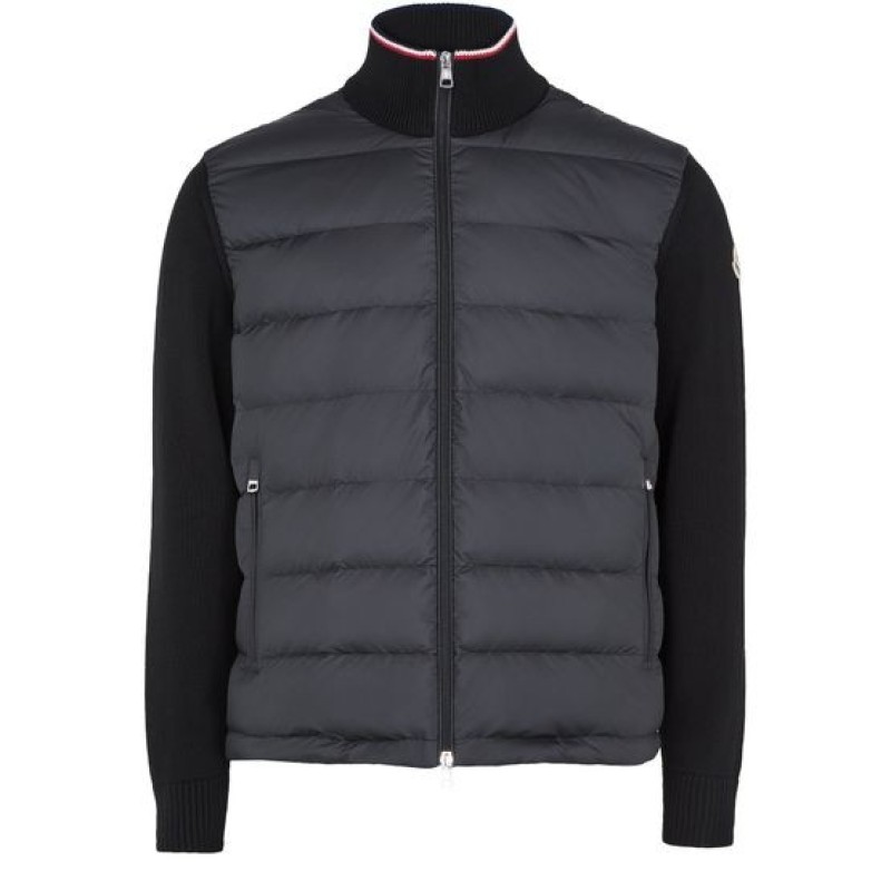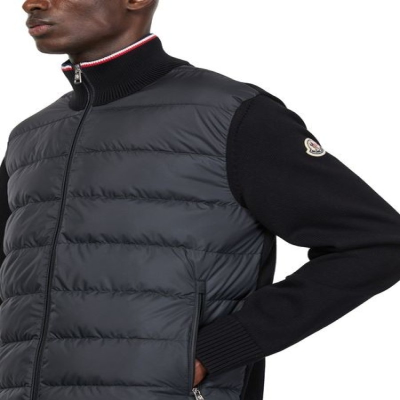 Unveil Moncler's bi-material jacket, featuring a high-neck and long sleeves for a sleek regular fit. The zipper closure adds practicality, while the blend of textures offers a modern edge. Perfect for layering, this jacket transitions effortlessly from day to night, enhancing any outfit.
