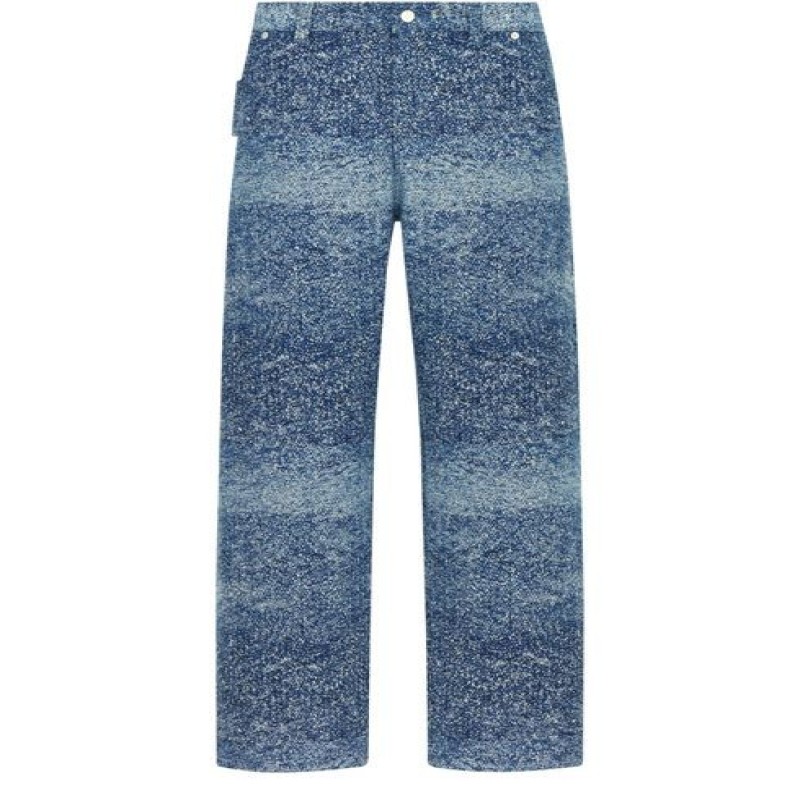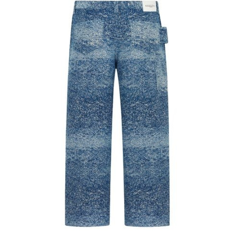 Introducing Dior's Carpenter Jeans with Christian Dior Paris Tag. These jeans feature a rear Christian Dior Paris leather jacron label, belt loops, and a zip and button closure. With side curved pockets and rear patch pockets, they blend utility with high fashion effortlessly.