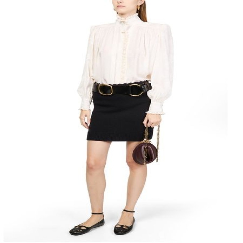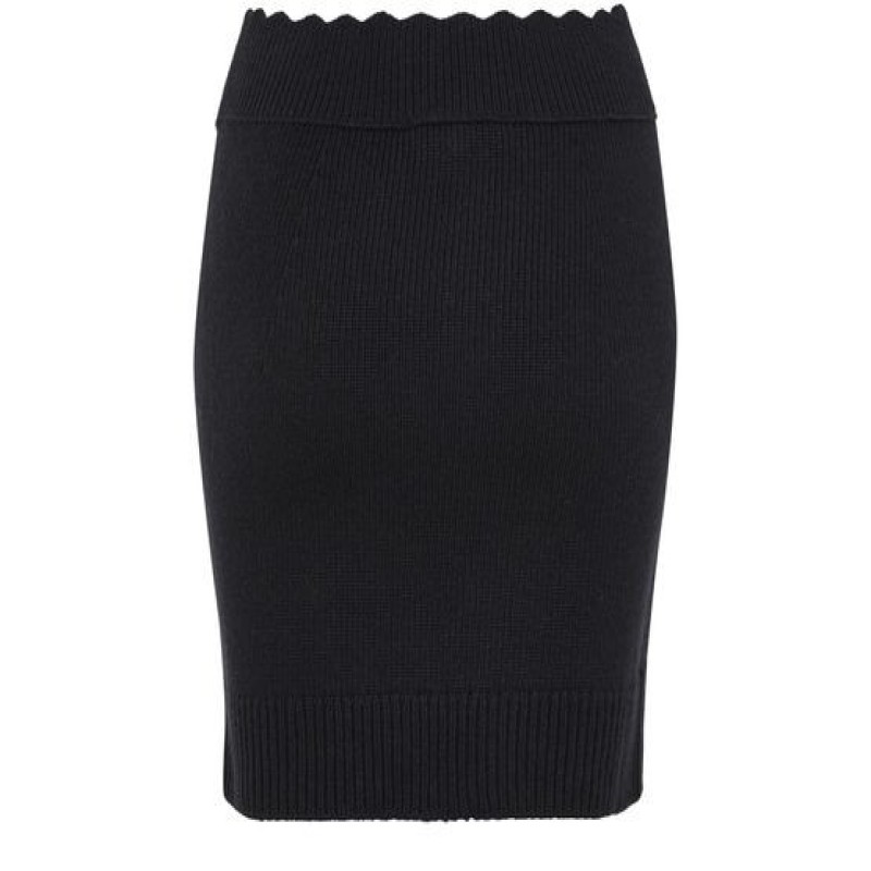 Reveal Chloe's knit skirt, a ribbed mini-length piece with an elasticated waist for a flattering fit. The scalloped edges add a touch of elegance, making it perfect for both casual and formal occasions. This versatile skirt transitions seamlessly from day to night, offering style and comfort.