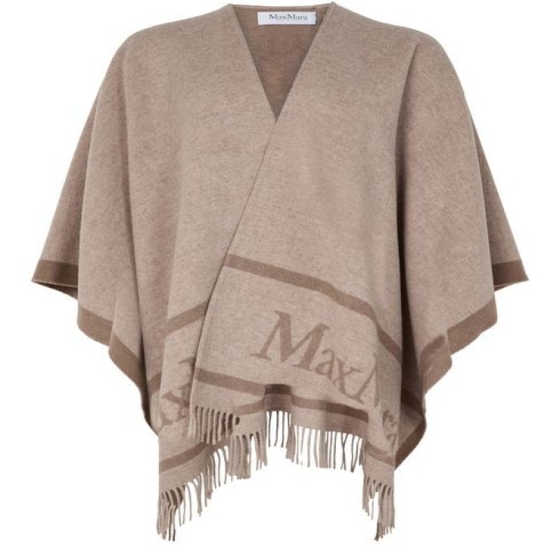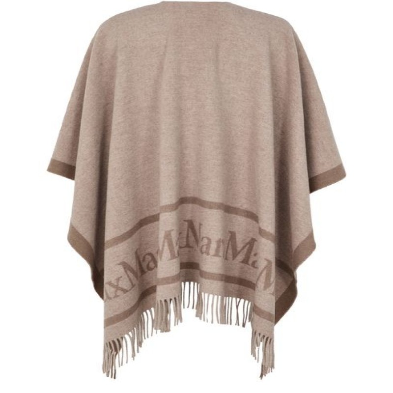 Introducing the Max Mara Hilde cape, a three-quarter-sleeved marvel adorned with fringe details. This stylish piece is accentuated by a front logo, effortlessly blending elegance and modernity. Experience its versatility, perfect for both casual outings and formal events, making it a must-have addition to your wardrobe.