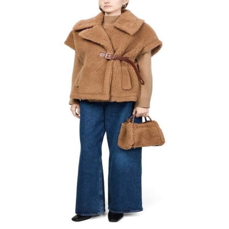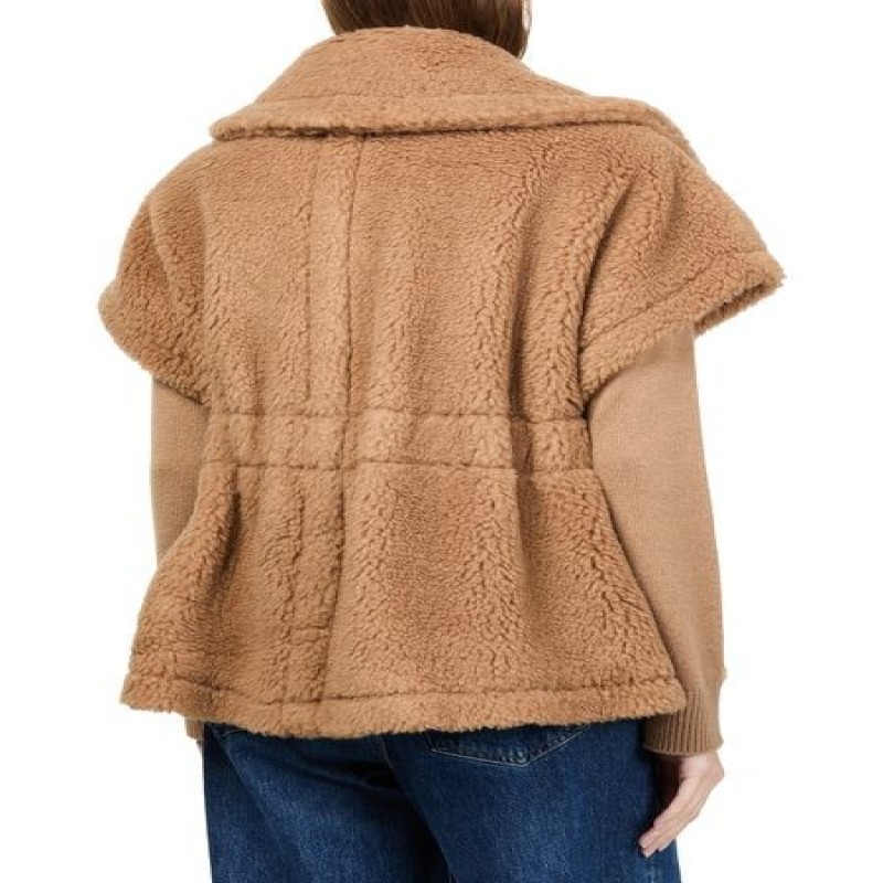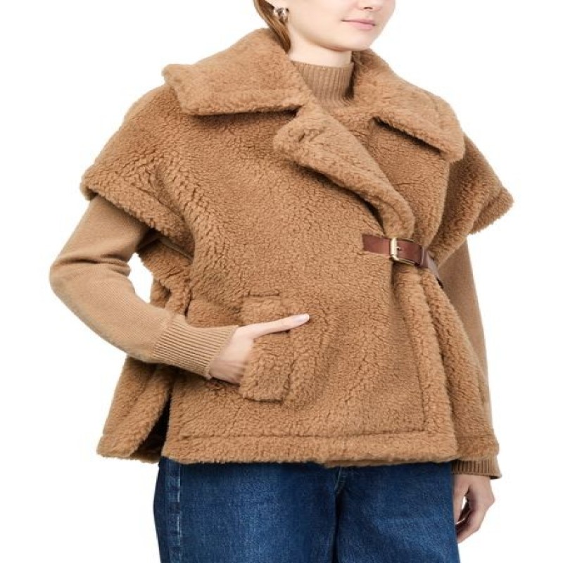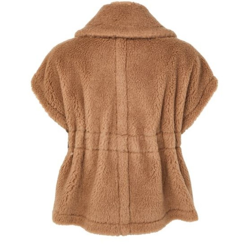 Reveal Max Mara's Newabavo Teddy cape, a masterpiece in knitwear. This regular fit piece features a warm fabric with a terrycloth lining, offering both comfort and style. The short sleeves and fur detail add a touch of elegance, making it perfect for any occasion.