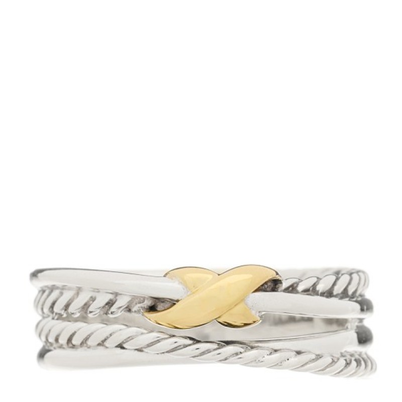 David Yurman Sterling Silver 18K Yellow Gold 6mm X Crossover Ring 56 7.5