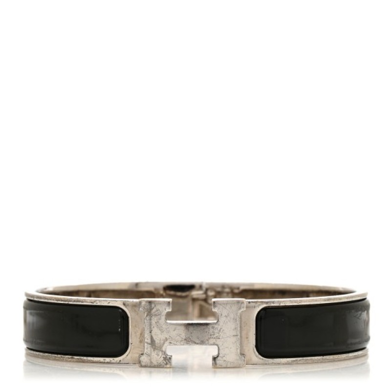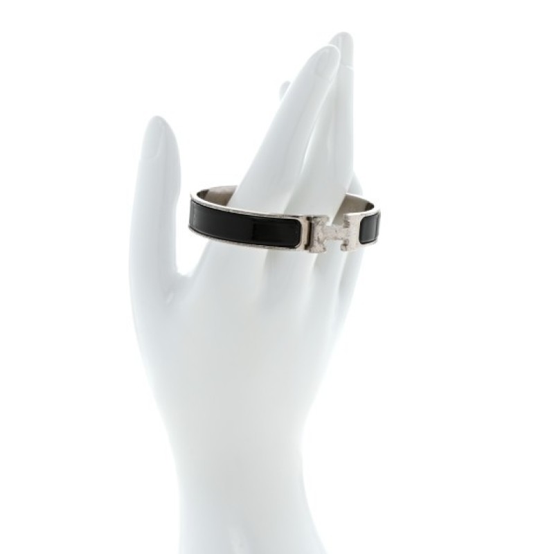 Hermes Enamel Narrow Clic Clac H Bracelet PM Black