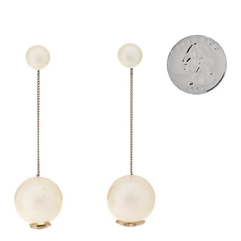 Chanel Pearl CC Chain Drop Earrings Gold