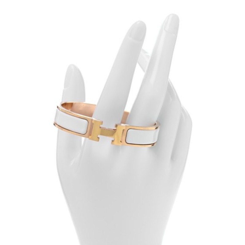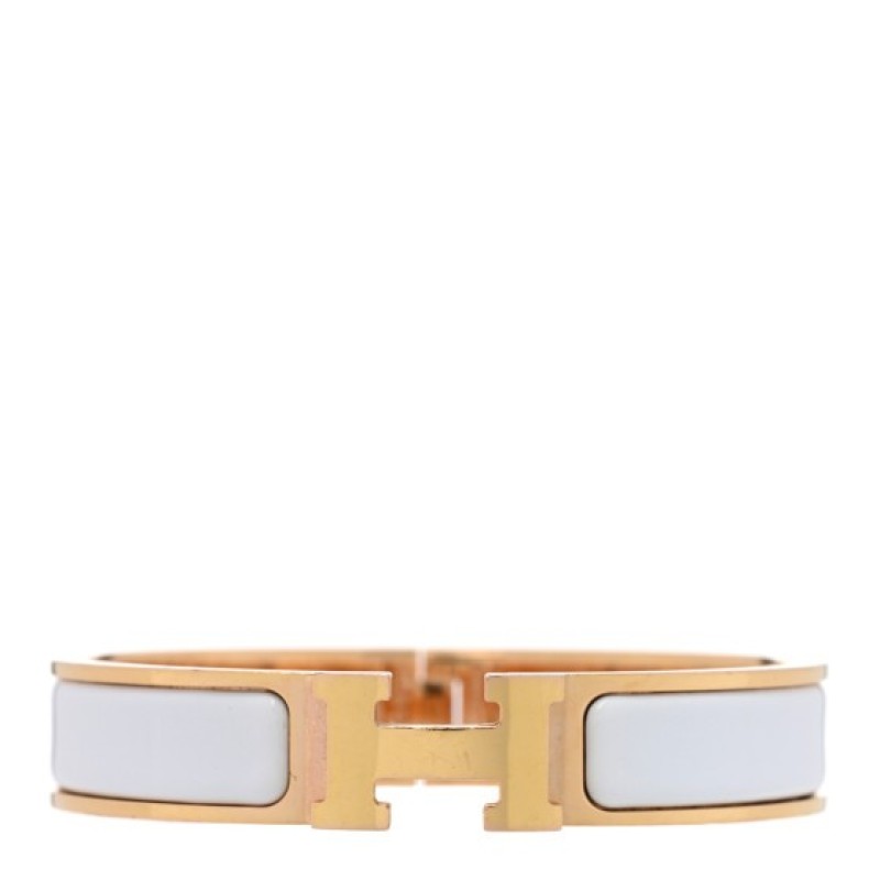 Hermes Enamel Narrow Clic Clac H Bracelet PM White