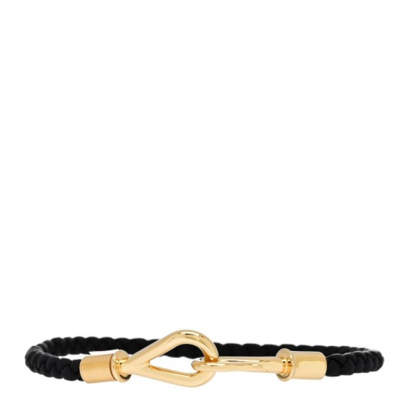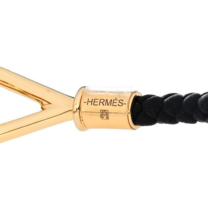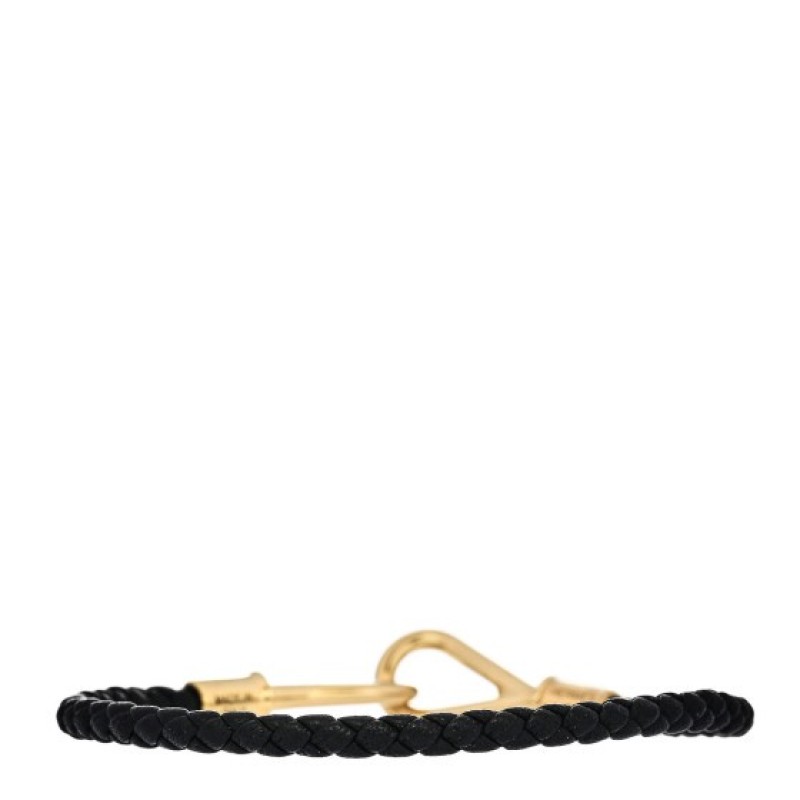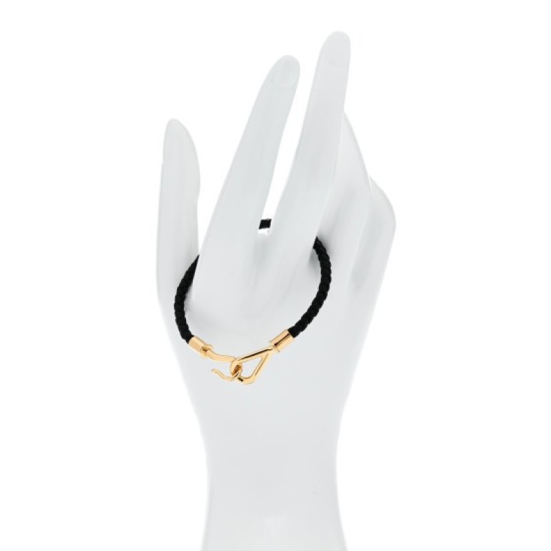 This is an authentic HERMES Swift Jumbo Hook Bracelet T2 in Black. This bracelet is crafted of tightly woven strands of black leather with a polished gold-tone hook at one end and a closed loop at the other.