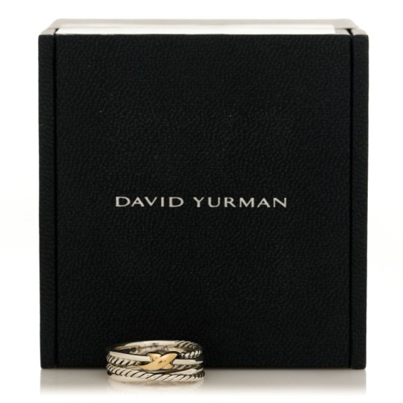 David Yurman Sterling Silver 18K Yellow Gold 6mm X Crossover Ring 50 5.5